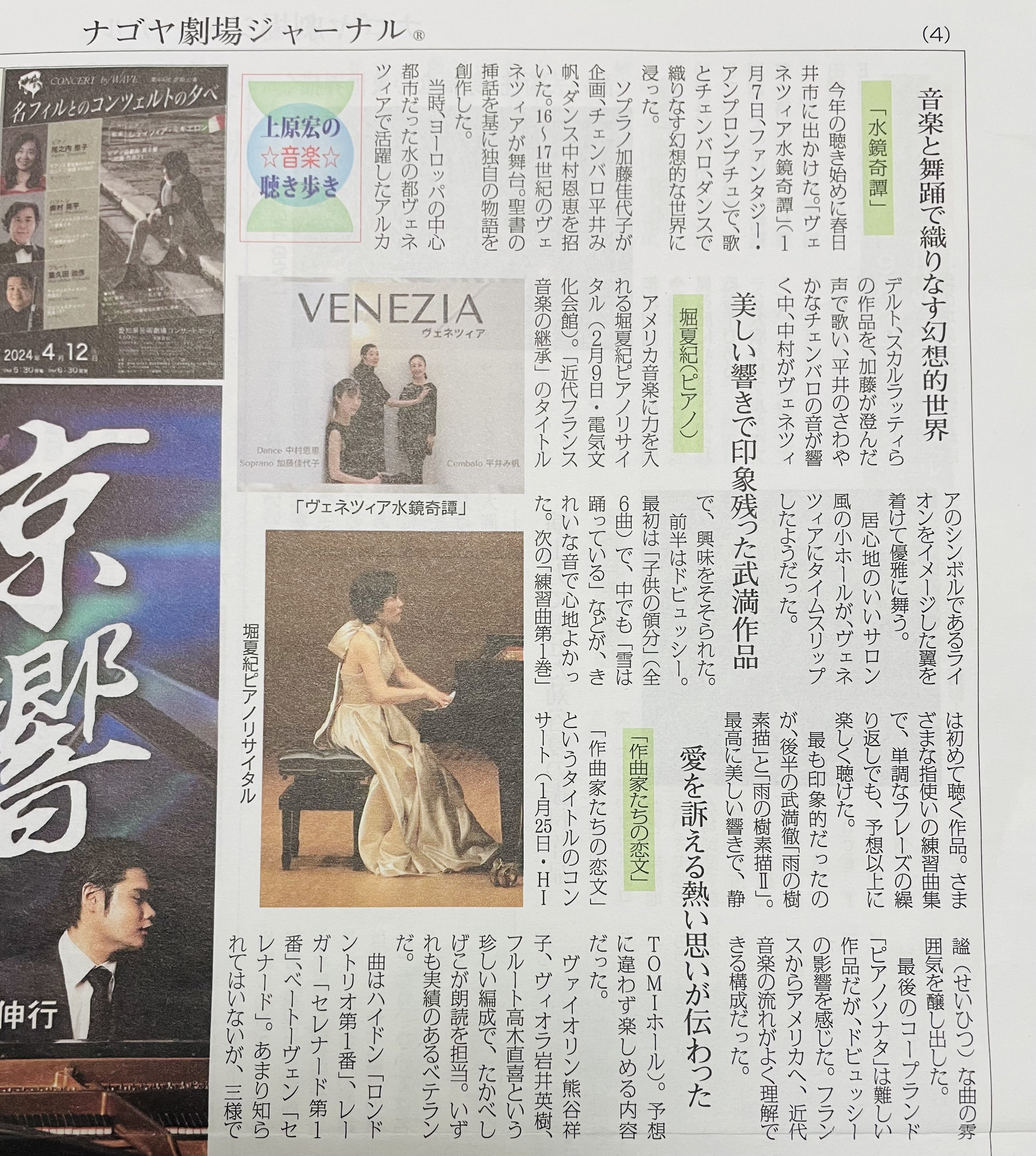 昨年のリサイタルの好評を「名古屋劇場ジャーナル2024年3月号」に掲載していただいています。是非、ご覧下さい。