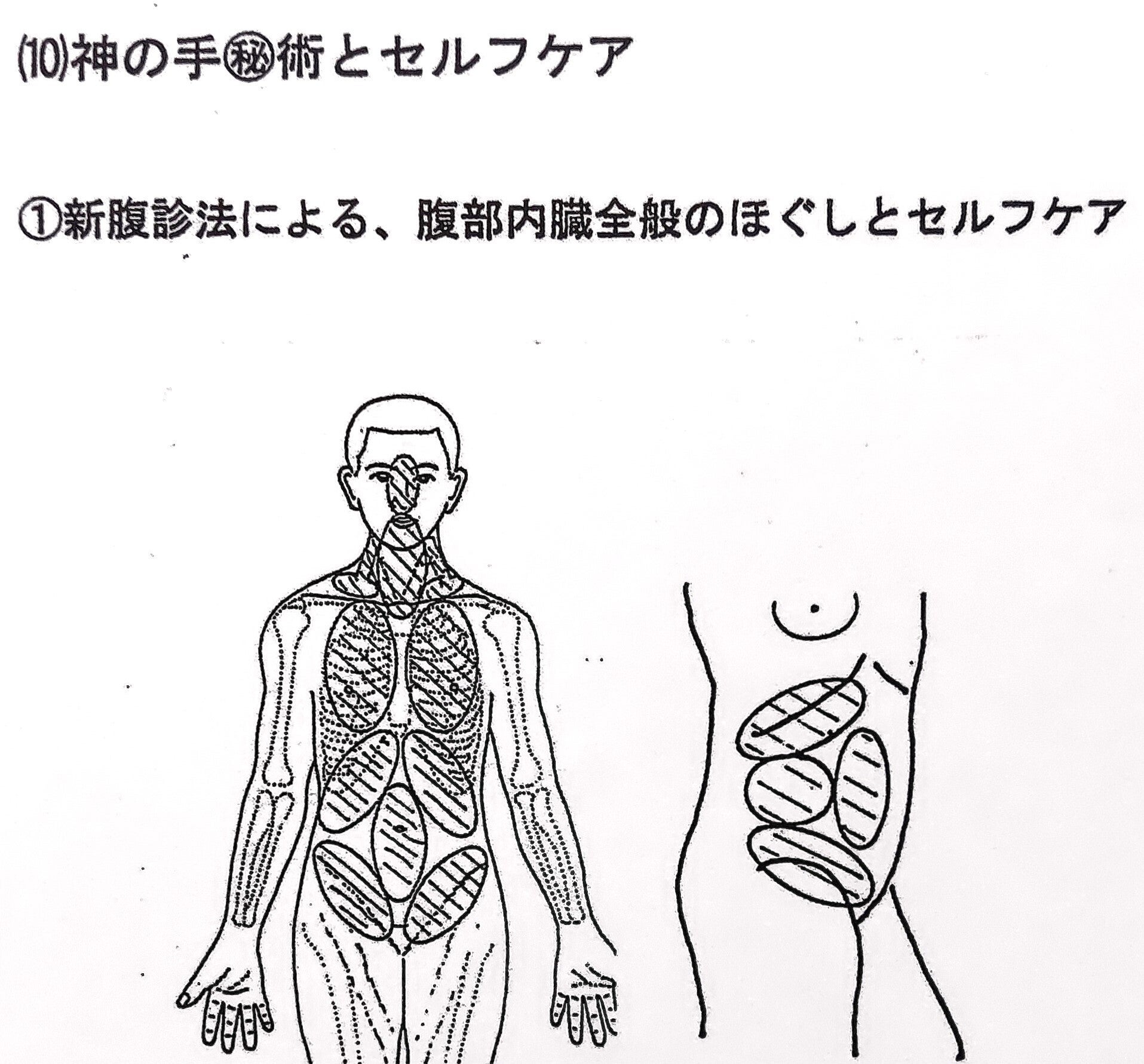 ①新腹診法による、ヒーリングハンズを使用した腹部内蔵全般のほぐしとセルフケア