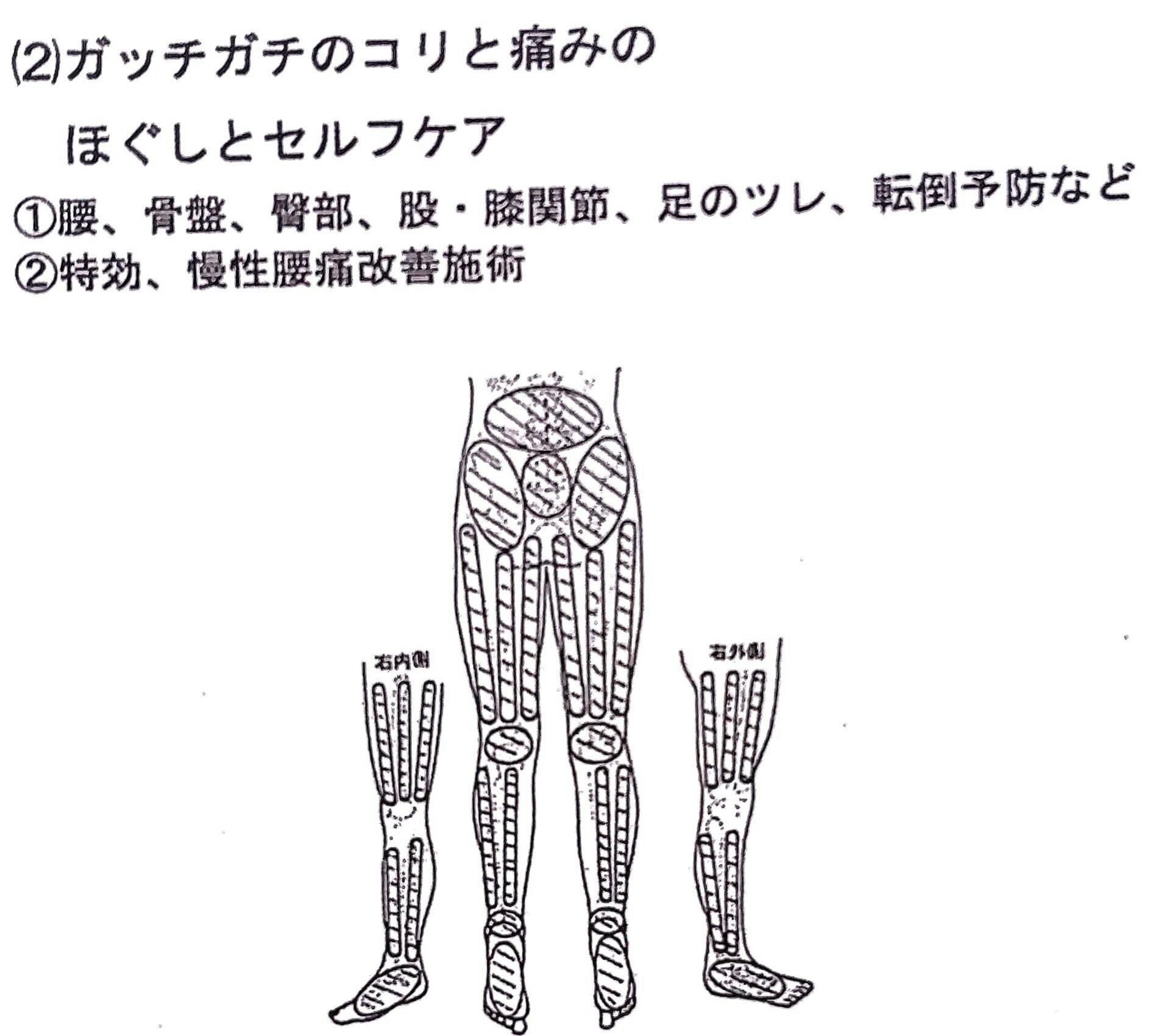 ①腰、骨盤、臀部、股・膝関節、足のツレ・こむら返り、、転倒予防など②特効、慢性腰痛改善施術