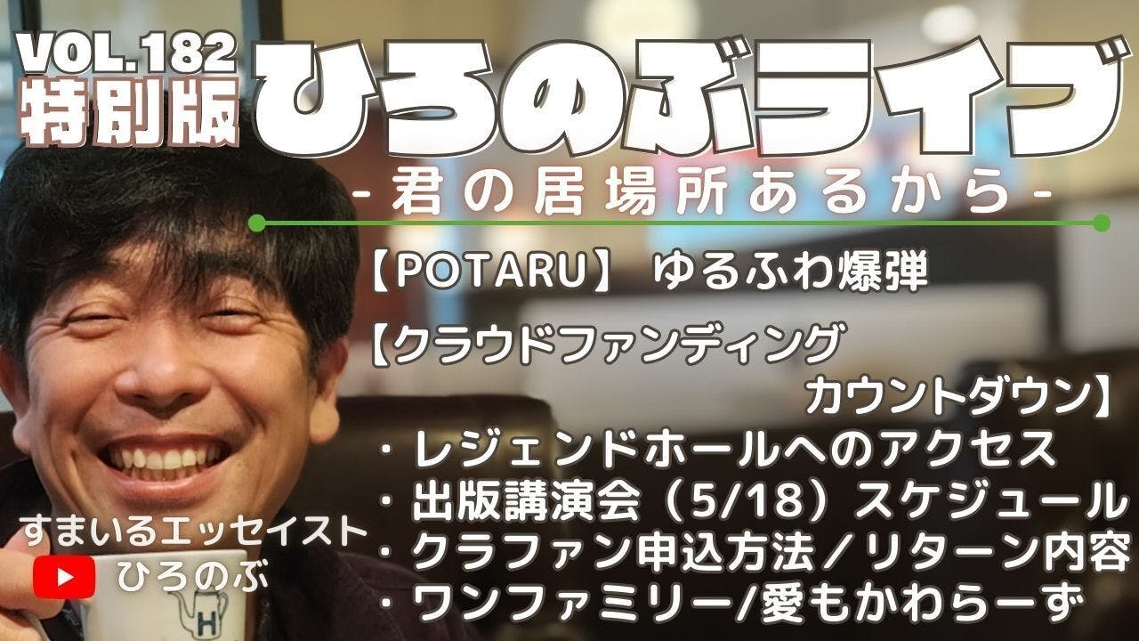 「クラウドファンディング」のカウントダウン配信をしました。