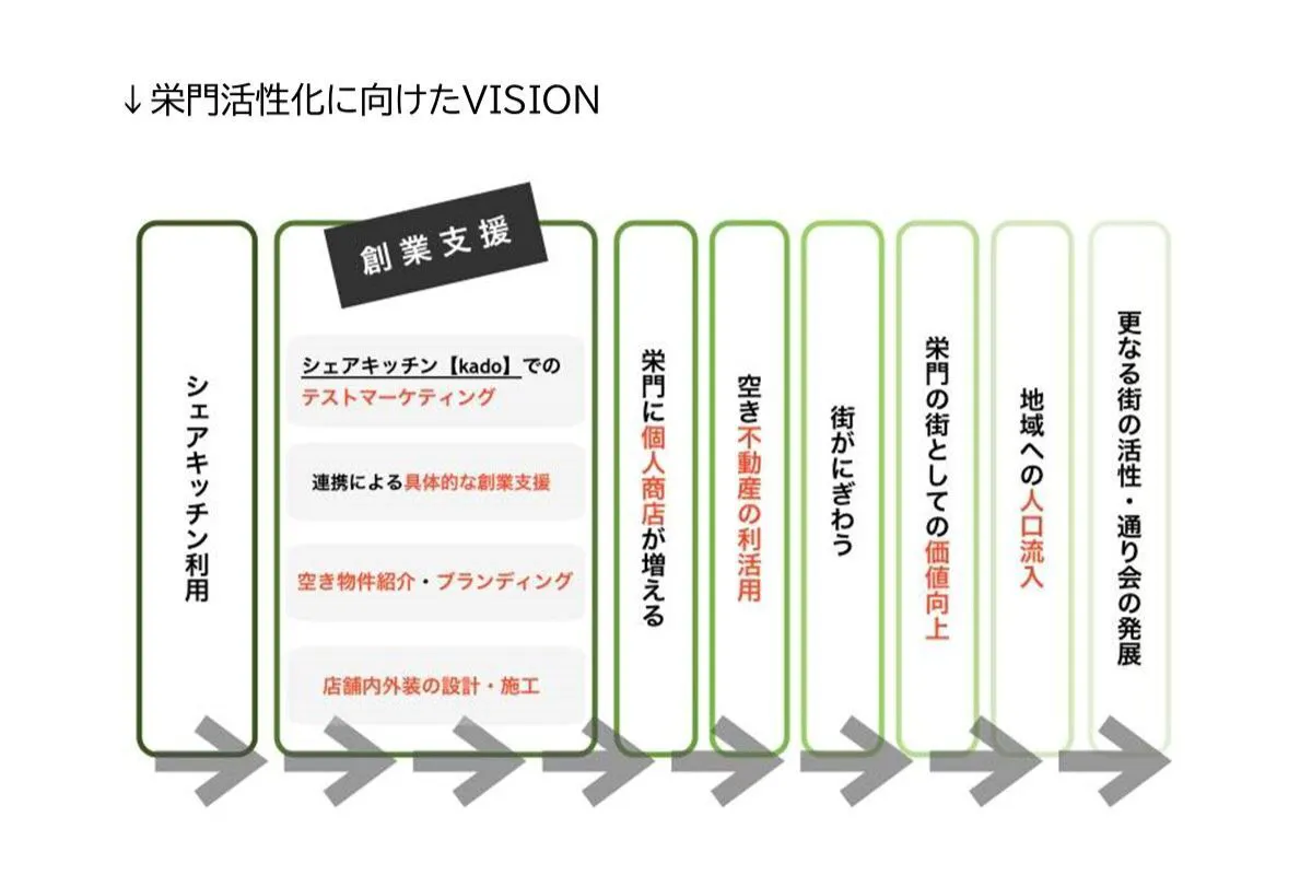 ❹将来的に、シェアキッチン出店を通して栄門エリアでの開業を誘致し、空き家解消へ