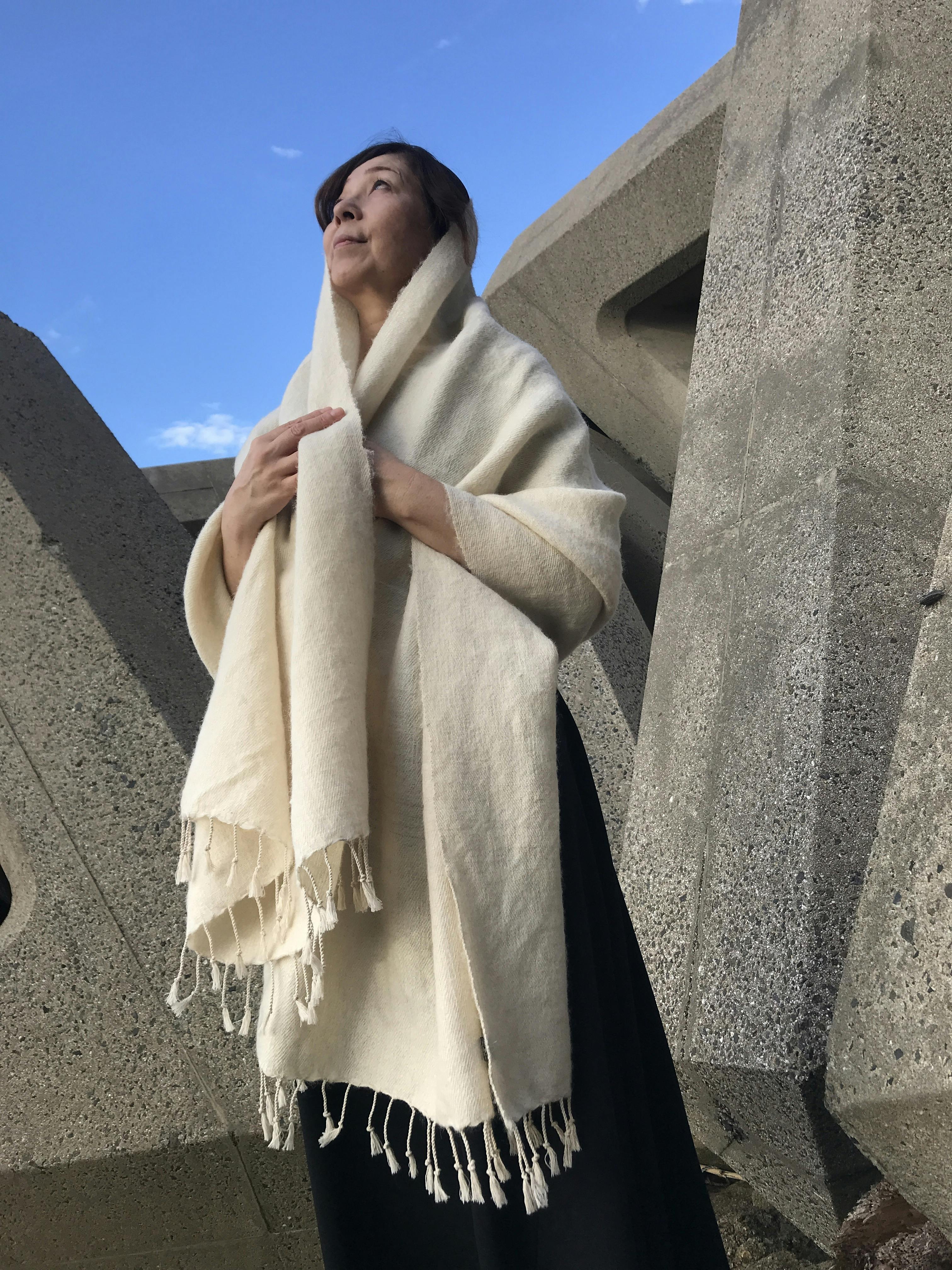 特別オーダーした「ヤクウール100% × オーガニックコットン」のストール
