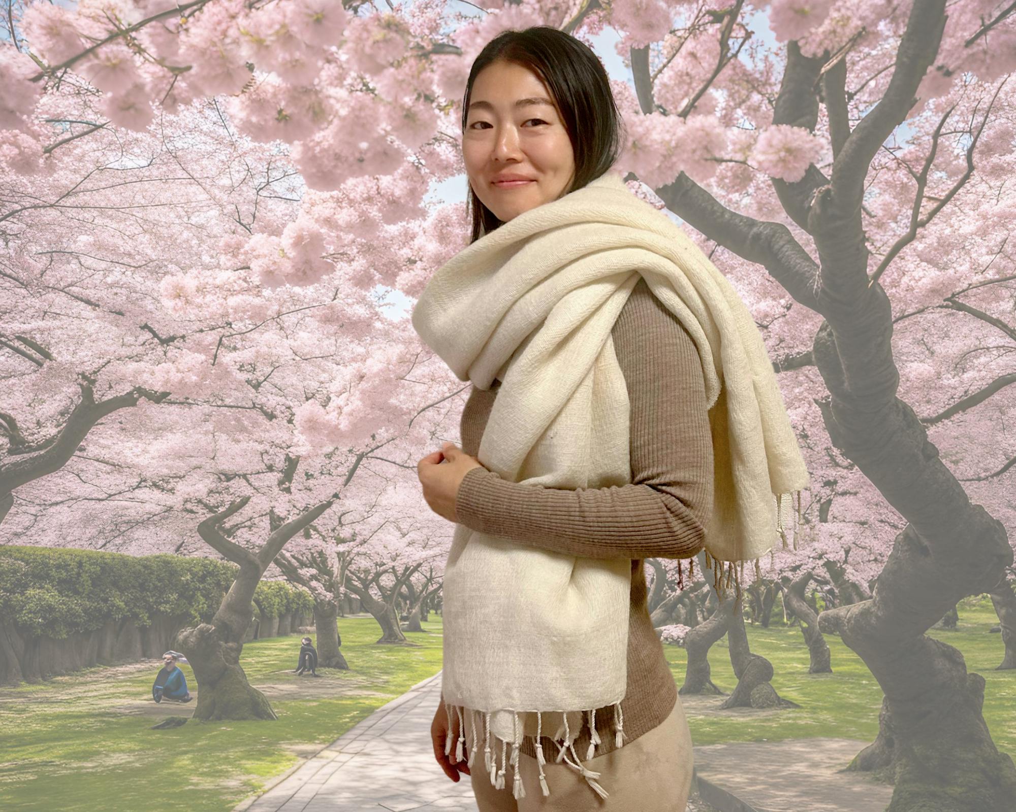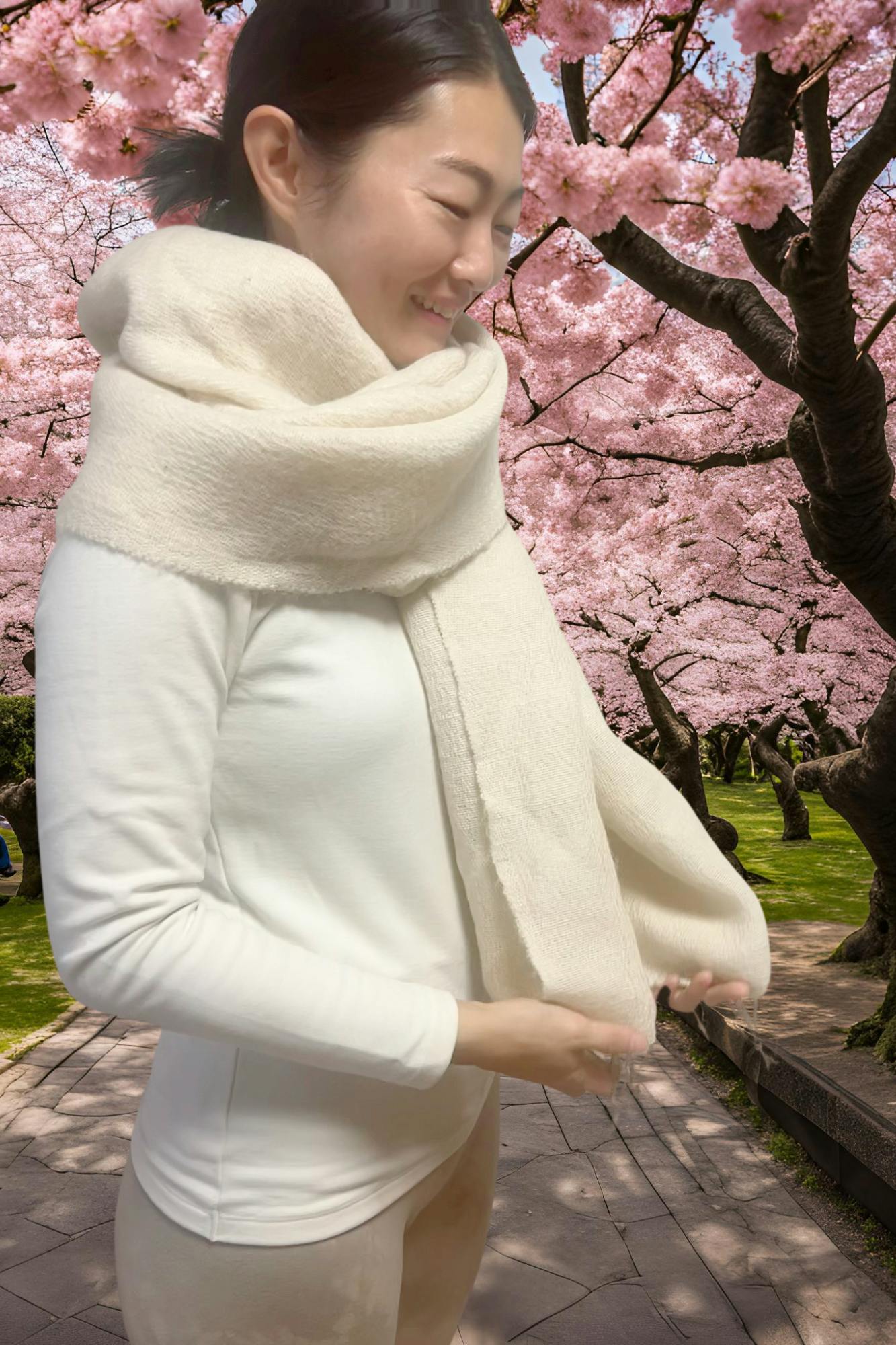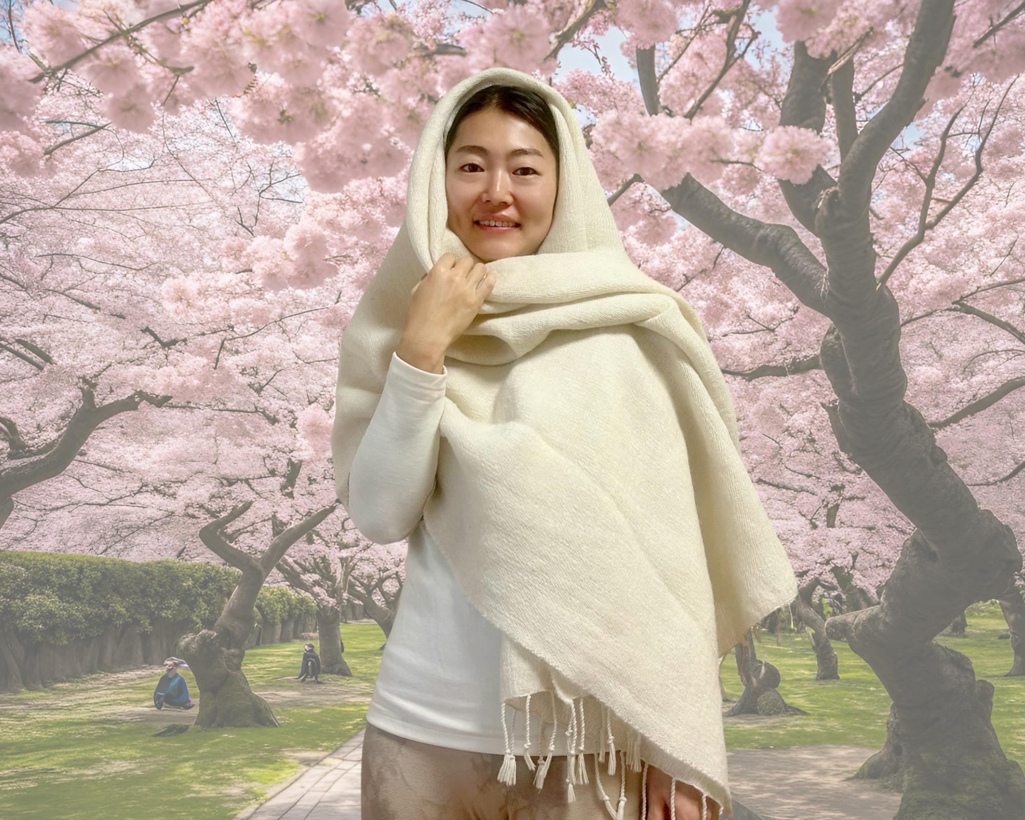 雪の日も、桜舞う春の季節も、「ヤク100%× オーガニックコットンのストール」愛と祈りをまとう、奇跡の一枚に毎日包まれる幸せを。