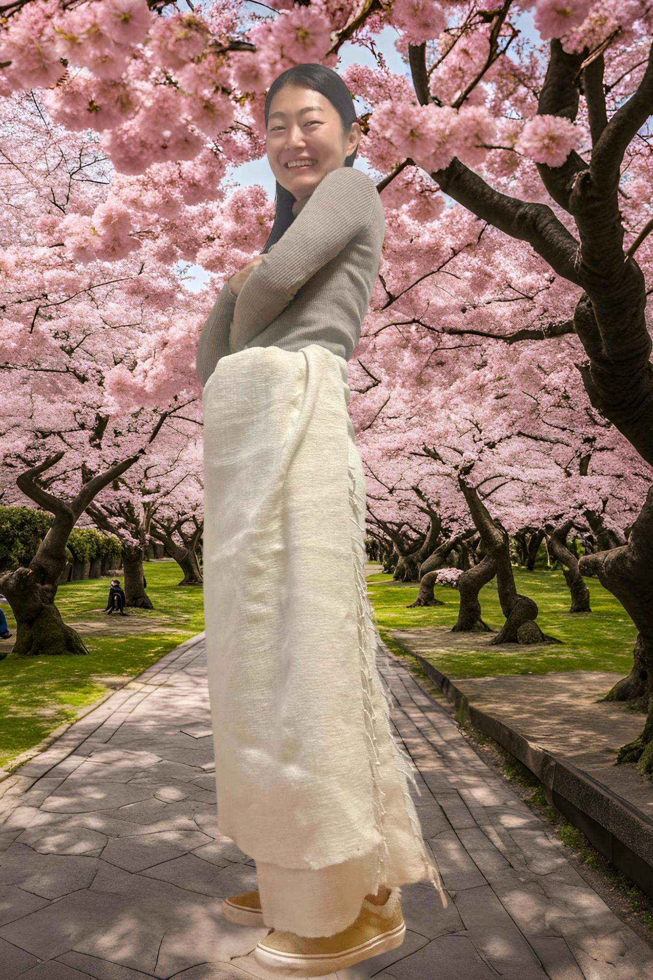 桜下で、オフホワイトストールは、毎年好評でとても褒めていただけます。