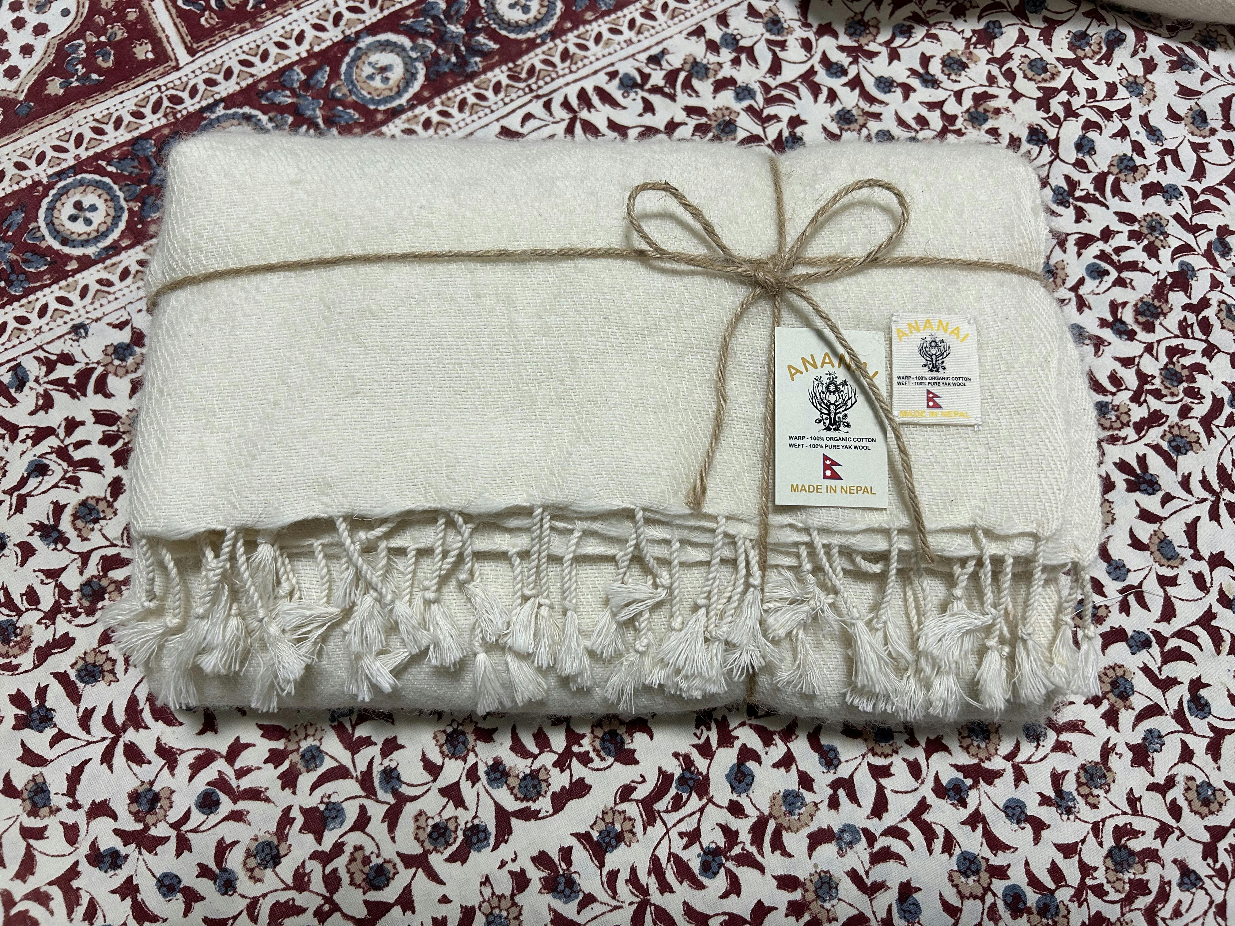 1️. 祈りと癒しを込めた「ヤク100%×オーガニック綿のストール」