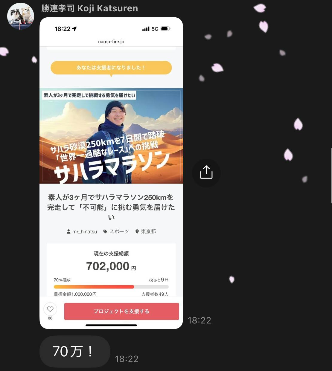 「こんな個人的な挑戦に誰が応援してくれるんだろう…」と思っていたのですが、まさかここまで多くの方に応援していただけるとは、正直、思っていませんでした。