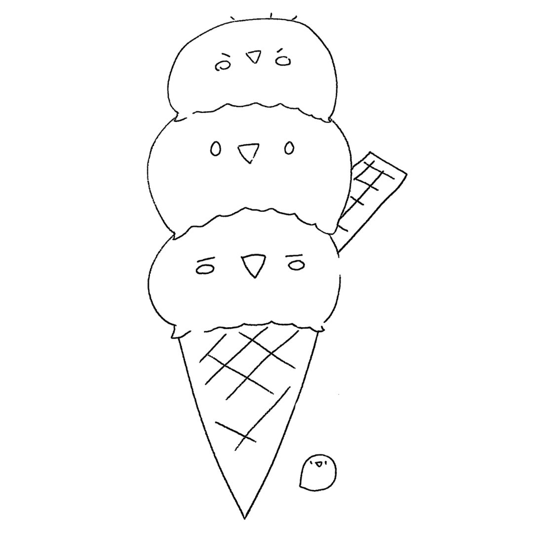 小鳥をモチーフにしたトリプルアイスのイラスト(小5デザイン)