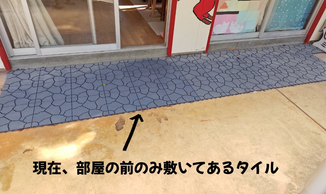 また、現在、トイレに行くために一度屋外へ出る必要があり、子どもたちもスタッフも、靴を履いて出て、トイレ入り口でスリッパへ履き替えています。部屋からトイレまで、靴を履かなくてもスムーズに移動できるように、渡り廊下を敷きたいと思っています。敷物の購入費にクラウドファンディングでいただいた資金を使わせていただきます。
