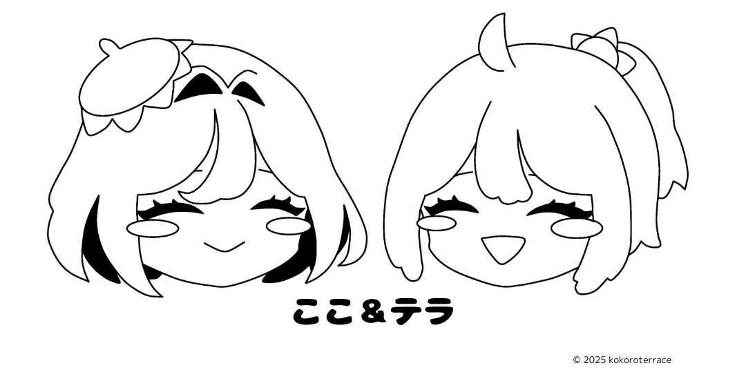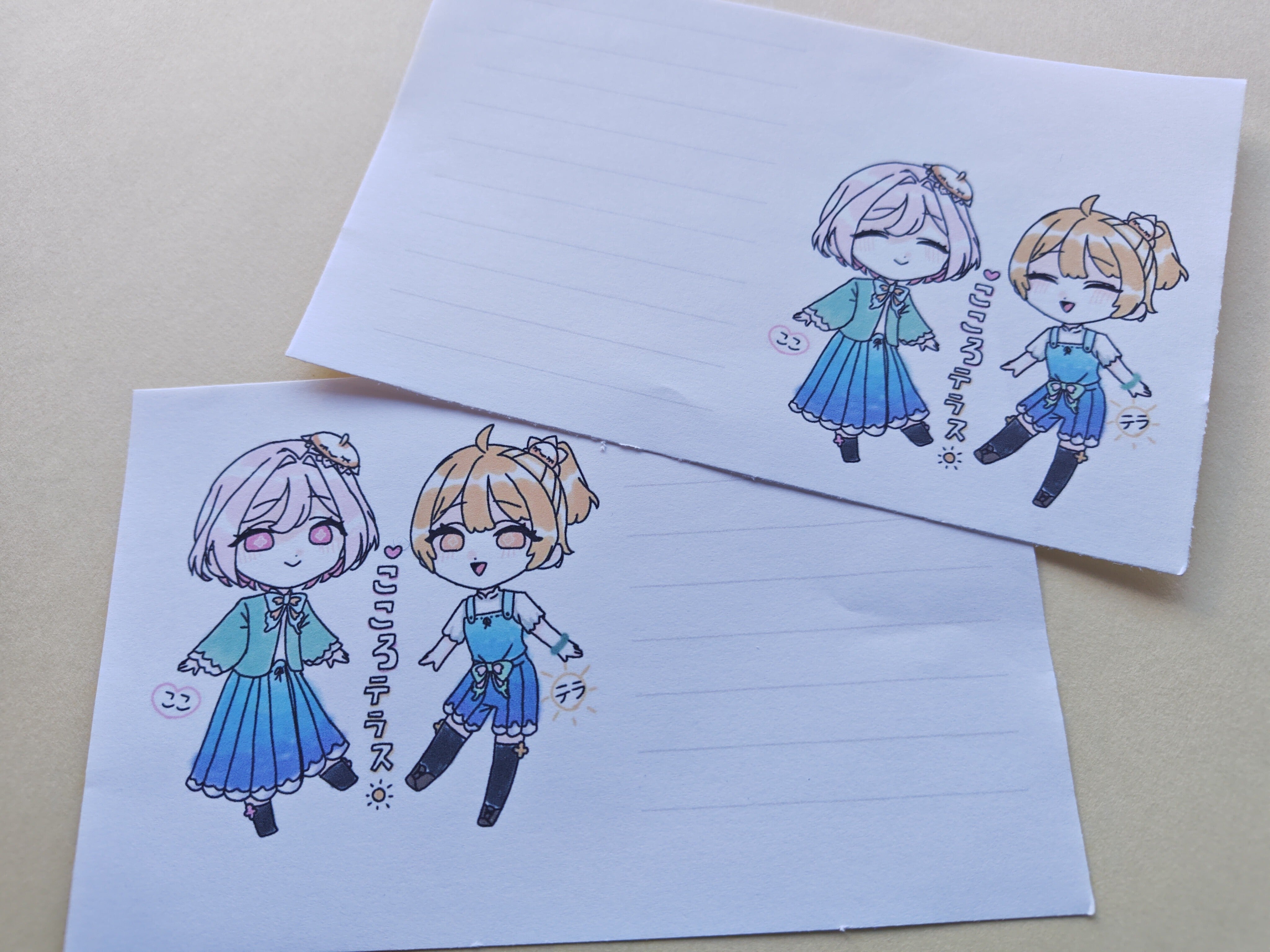 高校生の描いたここテラオリジナルキャラクター「ここ&テラ」のイラストをコースターとポストカードでお届けします♪こころテラスの看板を擬人化して誕生した「ここ&テラ」を末永くよろしくお願いします😊