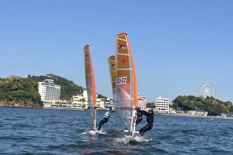 ウインドサーフィンというスポーツに聞きなじみがない人や、初めて聞いたという人もいると思いますが、ウインドサーフィンとは、簡単に言うと、風を使って水上を滑走するマリンスポーツです。海や湖といった自然の中で風を読み、艇を操って、コースを回る順位を競います。他のスポーツでは感じることのできない疾走感と爽快感で、風を感じながら水面を走り抜ける瞬間はとても楽しいです!