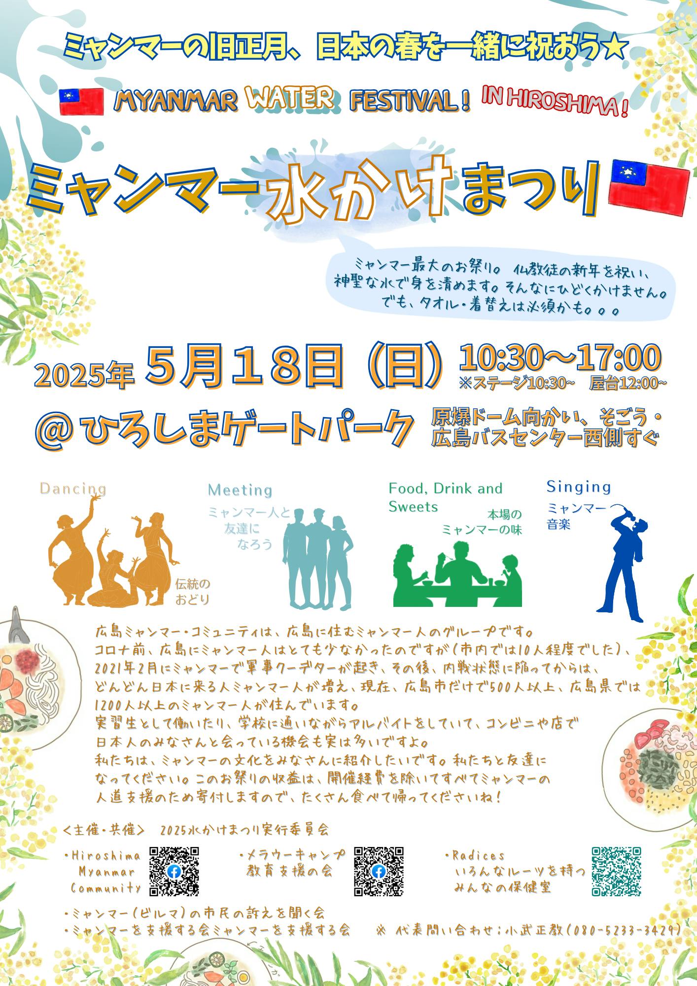 ※集まったお金は、「2025水かけまつり実行委員会」 (構成団体:広島ミャンマーコミュニティ、ミャンマーを支援する会、メラウーキャンプ教育支援の会、ミャンマー(ビルマ)市民の声を聞く会、協力:Radices~いろんなルーツを持つみんなの保健室 )で使用させていただきます。