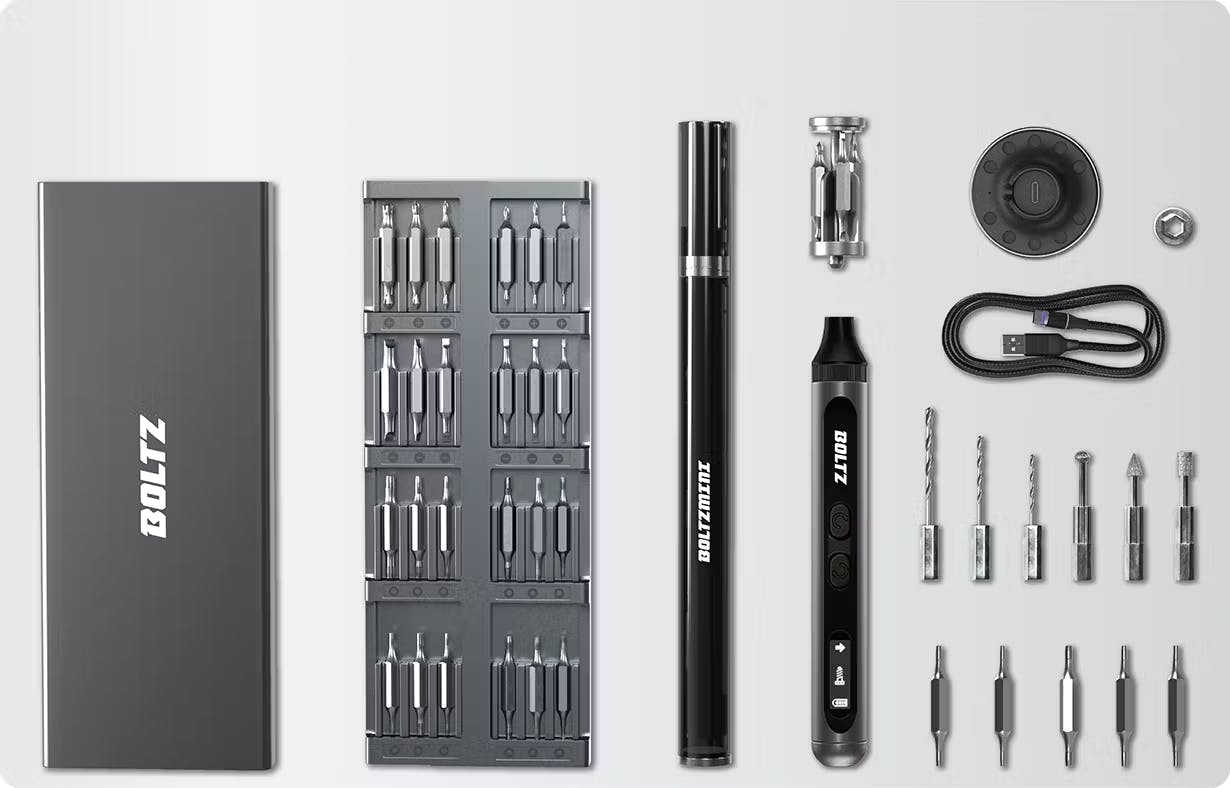 現代のテクノロジーが進化する中、軽量で便利でありながら、パワフルなツールへの需要は多くの消費者が求めているものです。BOLTZ MINIは、これらの要件を完璧に満たす製品です。現代的なデザイン、わずか50gの重さ、112個のビットを収納できる能力を持つBOLTZ MINIは、単なるツールではなく、日常のあらゆる作業において頼れる相棒となるでしょう。