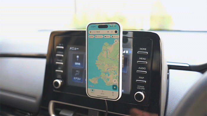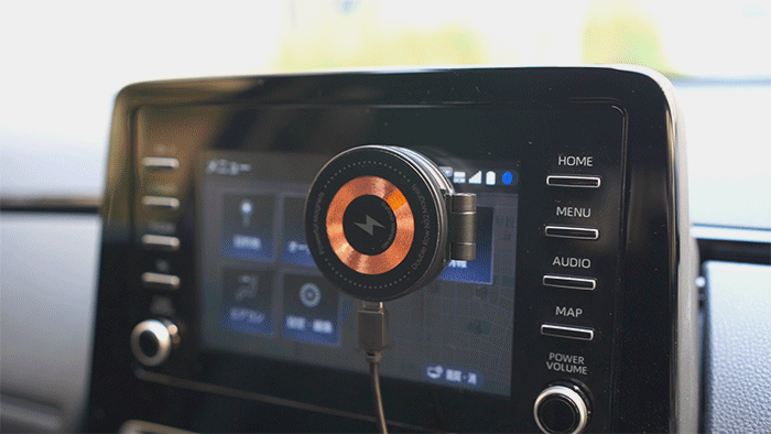 冒頭で紹介したとおり本製品は充電機能も搭載済み。USB-Cケーブルを挿す必要はありますが、MagSafe対応iPhoneなら充電しながら使えますよ。