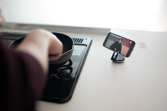 平面ならどこでもくっつくので活躍シーンは車内に限りません。筆者は自炊をよくするので、キッチンでレシピや好きな動画を見るのに便利でした。