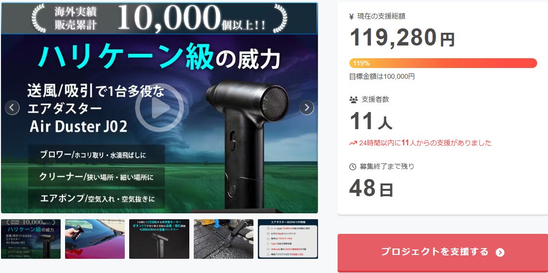 この度は「送風・吸引!車やおうちでの掃除にもアウトドアにも最適な小型の2wayエアダスター」に支援 頂き誠にありがとうございます!
