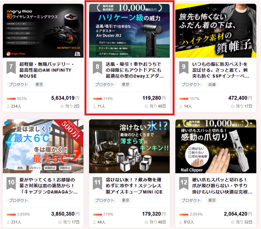 皆さんこんにちは、Brightチームです。この度は「送風・吸引!車やおうちでの掃除にもアウトドアにも最適な小型の2wayエアダスター」を支援 いただき、本当にありがとうございます。人気ランキングのプロダクト部門 8 位に入賞することが出来ました!Air Duster J02に搭載されているモーターはなんと最大回転数110,000RPM、吸引力は3.5Kpaを誇ります。この高速モーターによる強力な風によって、ゴミやほこり・水滴などを瞬時に吹き飛ばします。31日7月旬まで販売期間は続きますので、ぜひSNSでのシェアや身近な方にもおすすめしていただけると嬉しく思います。https://camp-fire.jp/projects/820863/viewどうぞよろしくお願いいたします。ありがとうございました。スタッフ一同