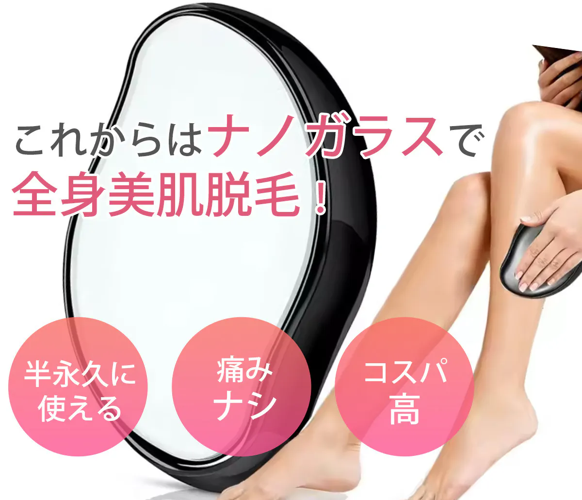 ナノ加工された特殊ガラス面で、ムダ毛を簡単かつ優しく除去でき、さらに角質除去で美肌効果も期待できます。男性の濃い毛もしっかり処理できるため、誰でも手軽に使える脱毛アイテムとして、日常のケアに役立つと考えています!