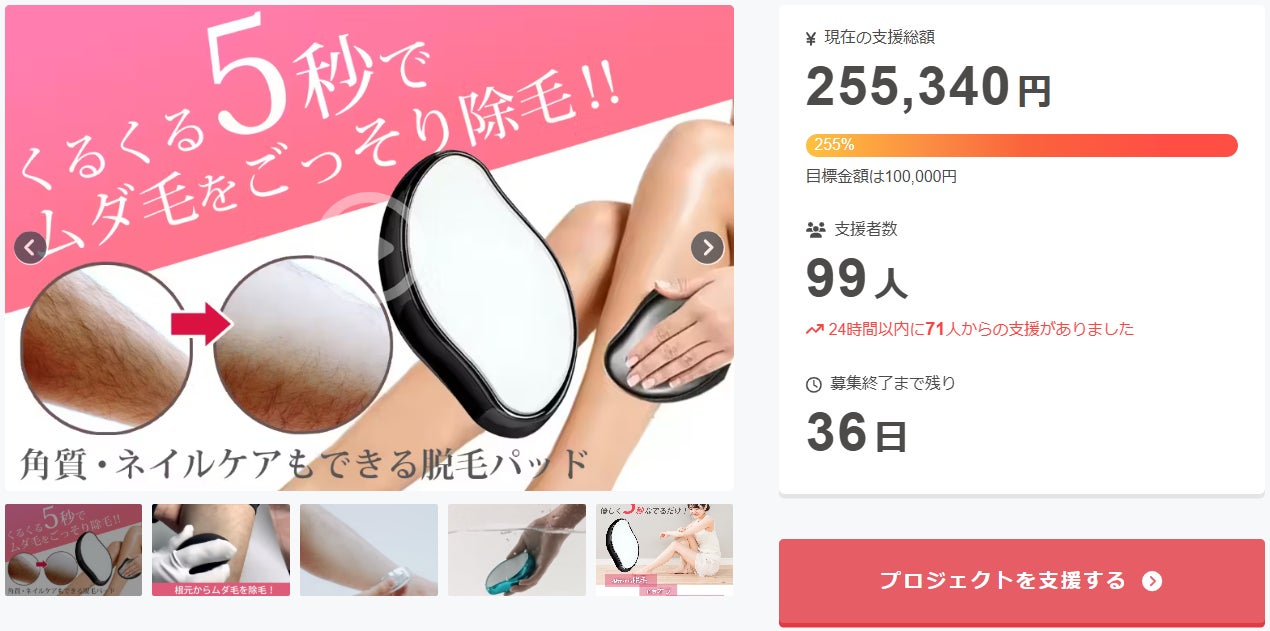 この度は「男性の濃いムダ毛の処理や角質除去もできる!優しくなでるだけで脱毛できる脱毛パッド」を支援いただき、本当にありがとうございます。