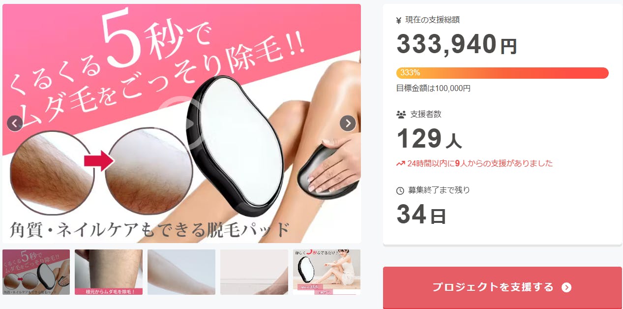 この度は「男性の濃いムダ毛の処理や角質除去もできる!優しくなでるだけで脱毛できる脱毛パッド」に支援 頂き誠にありがとうございます!