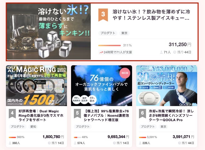 また本日のCampfire人気ランキングプロダクト部門 で 3位!