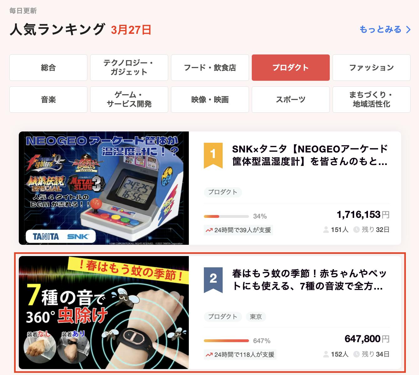 また本日のCampfire人気ランキングプロダクト部門 で 2位!総合で 10 位に入賞することが出来ました!