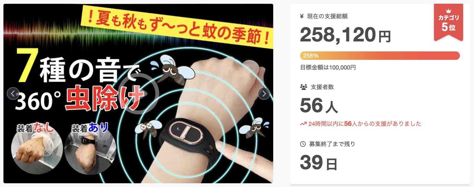 この度は「夏も秋もずっと蚊の季節!赤ちゃんやペットにも使える7種の音波で全方位虫よけバンド」を支援いただき、本当にありがとうございます。