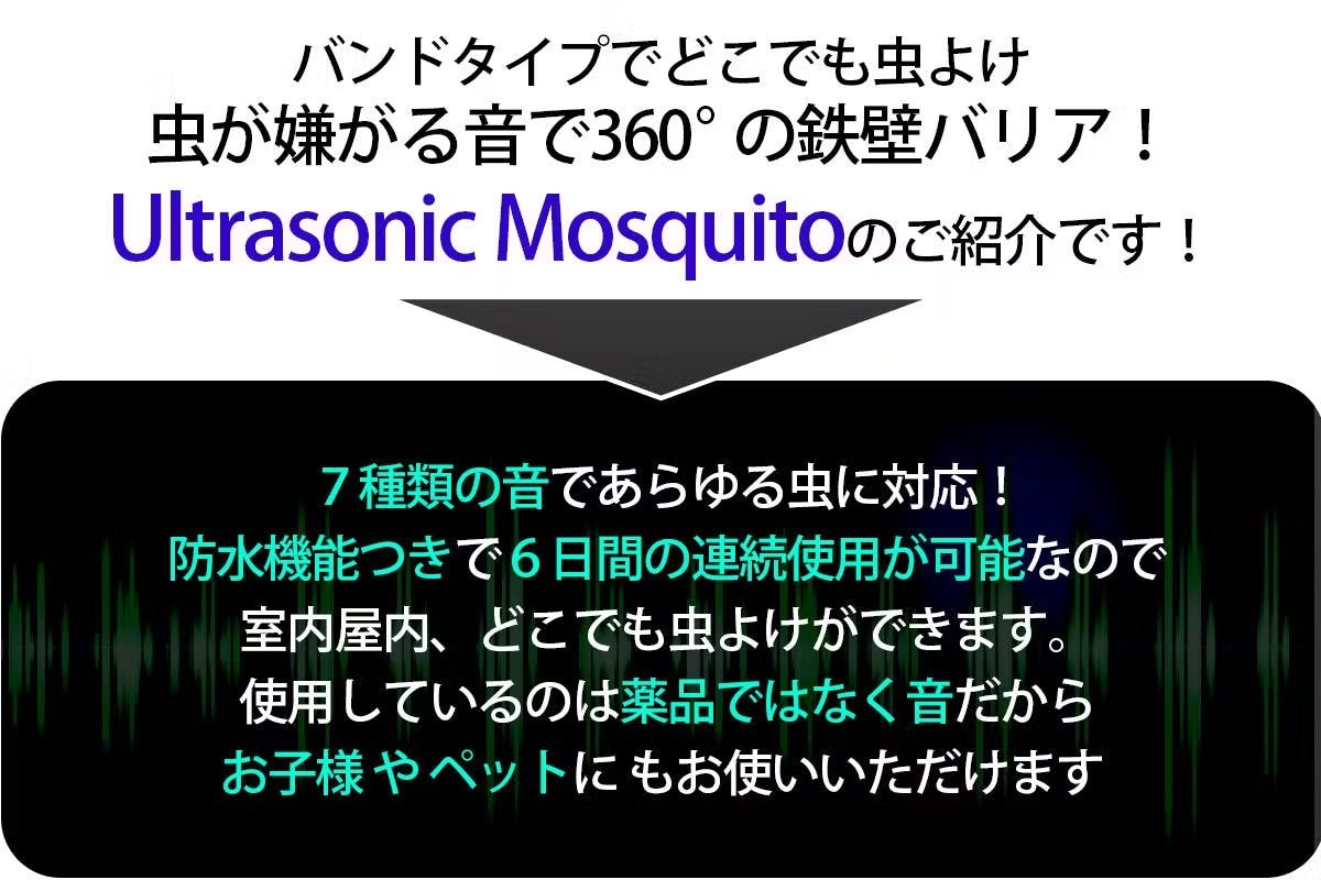 Ultrasonic Mosquitoは蚊の嫌がる音波を出し、効果的な蚊よけを行います。