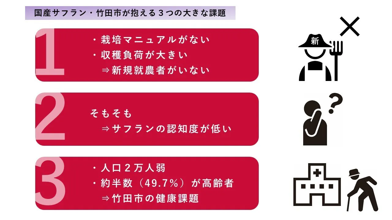 私たちは、その危機を乗り越え、竹田サフランの未来をつくる第一歩を踏み出したいと考えています。