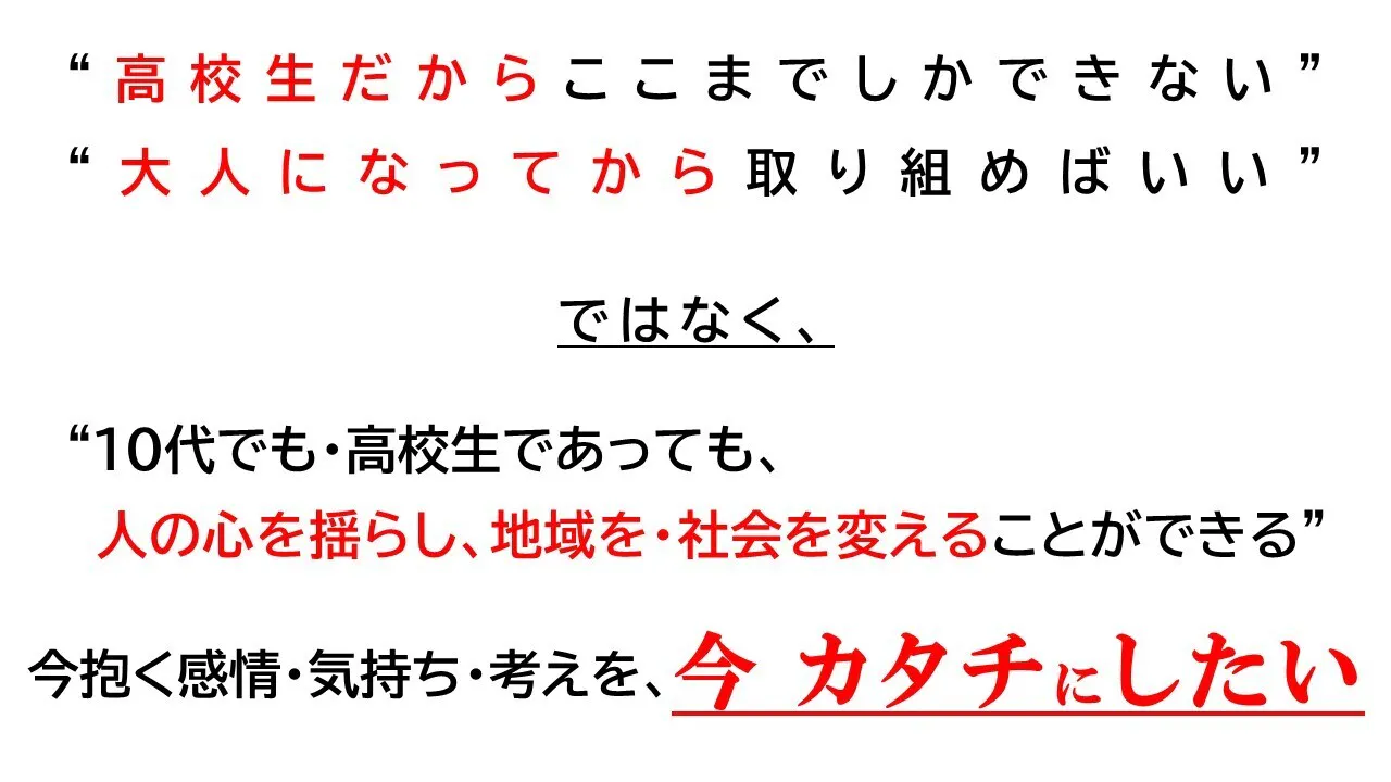 ✔私たちはこれまでの取り組みを、R6.8月「SDGsQUESTみらい甲子園大分大会」で発表し、最優秀賞を獲得することができました。全国大会では特に共感度の高い上位4校に選ばれサントリー賞を受賞し、大きな自信を得ることにつながりました。