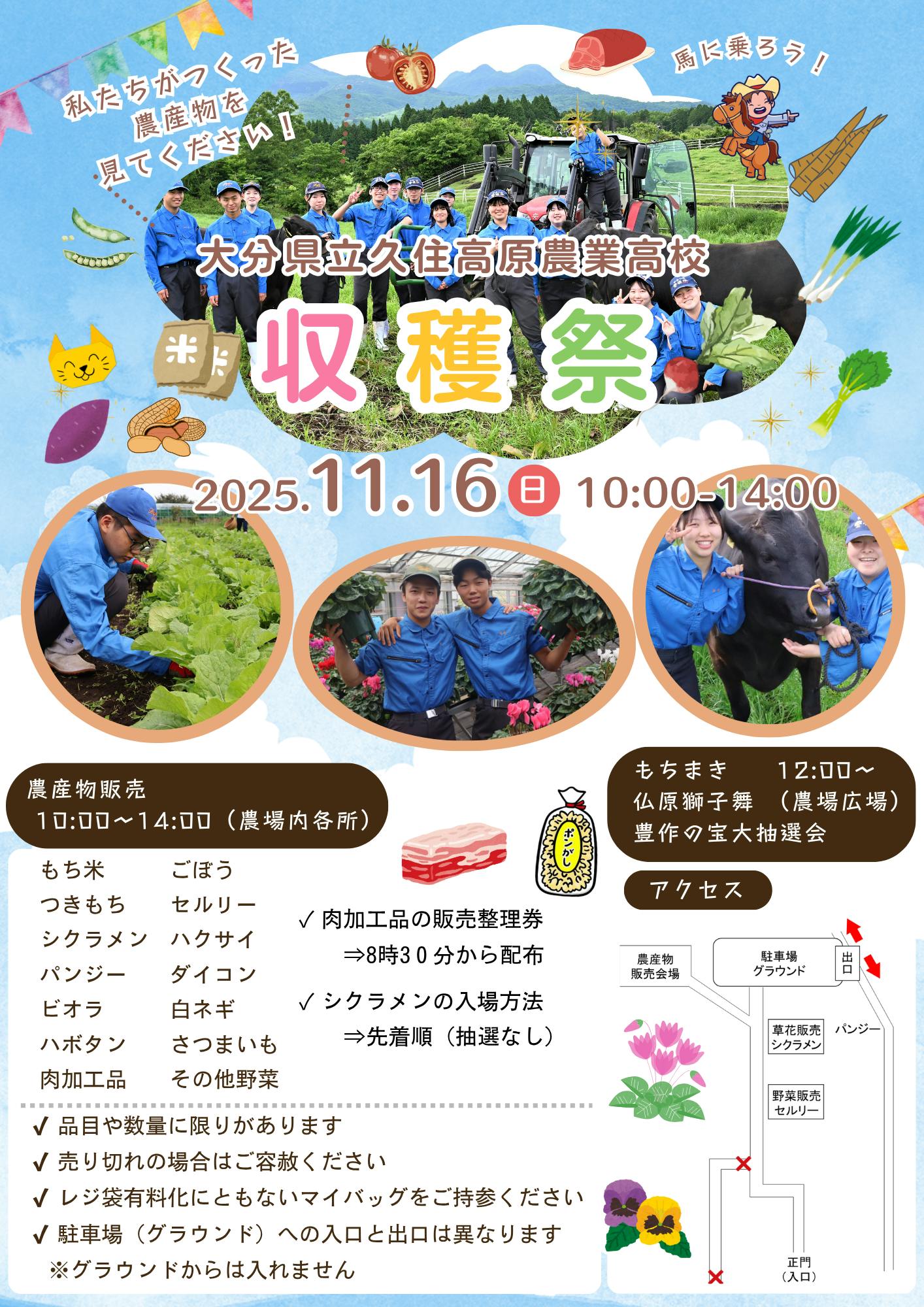 2025/11/10 08:30いつも「おいしい“たけた”研究会」の活動を応援してくださり、本当にありがとうございます。私たちはこれまで、竹田を代表する地域資源であるサフラン・チョロギ・岡大豆・紫草をテーマに、栽培や商品開発、地域連携を通して“竹田ならではのおいしさ”を探ってきました。そしてこの秋、いよいよその集大成となる第5回 おいしい“たけた”研究会を開催します!今回は、私たちの学校で行われる一大イベント「収穫祭」との同時開催です。これまで学び、育て、磨いてきた地域の恵みを「味」で感じていただけるよう、竹田市直入町に今年オープンした喫茶店「うたかた」の 大塚シェフ、そして連携している農家の方々と協力して開発した竹田の食材の魅力をぎゅっと込めた一皿「おいしい“たけた”飯」を販売します!!!------------------------------------------------------------------------------------------------------------------------『喫泡うたかた』オーナーシェフ:桑島孝彦さん住所:大分県竹田市直入町長湯7993-2定休日:月・火曜日(※その他不定休あり)営業時間:11:00~14:00(ランチタイム) 14:00~16:00(喫茶タイム) 18:00~20:00(ディナータイム) 20:00~22:00(バータイム)電話番号:0974-75-2272Instagram:https://www.instagram.com/kippo.utakata.spa.nagayu/炭酸温泉で炊いたパエリアはめちゃくちゃ美味しい絶品です!!!カボスとはちみつの炭酸ジュースも最高ですよ!!!------------------------------------------------------------------------------------------------------------------------また当日は、農産物や加工品の販売、研究展示なども行います。日頃の実習での学びや活動の成果を、地域の皆さんや支援者の皆さんと共有できることをとても楽しみにしています。今回は事前申込不要・入場自由です。ぜひお気軽に、秋の久住高原へ遊びにいらしてください。支援してくださった皆さんにも、直接お会いできたらとても嬉しいです。(開催概要) 日 時:令和7年11月16日(日)10:00~14:00(集合9:30) 会 場:大分県立久住高原農業高校 農場広場 おいしい“たけた”研究会 特設ブース 内 容:「おいしい“たけた”飯」の販売(サフラン・チョロギ・岡大豆などを使用) 農産物・加工品の販売、研究展示 ほか 参加費:無料(※商品の購入は実費)今年のテーマは、“収穫のよろこびを、地域とともに”。これまで支えてくださった皆さまへの感謝を込めて、竹田の実りと私たちの学びを「おいしい一皿」でお届けします。皆さまのご来場を、心よりお待ちしています!!!おいしい“たけた”研究会 生徒一同大分県立久住高原農業高校 もっと見る