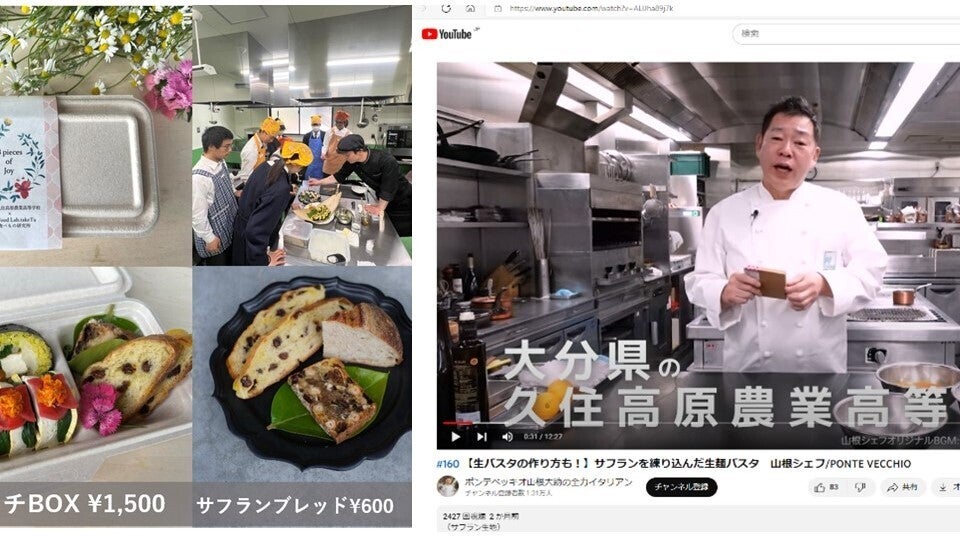✔認知度向上のため地元シェフとのコラボ商品を展開。YouTubeでも大人気の大阪のリストランテのシェフに依頼し、本校のサフランを使用した調理動画を発信。さらに、くだものかふぇでのホットジンジャーサフランドリンクの販売を実現。大分県内の新聞・ラジオといったメディアでのPR活動も積極的に行いました。