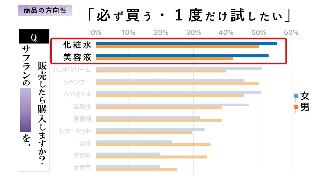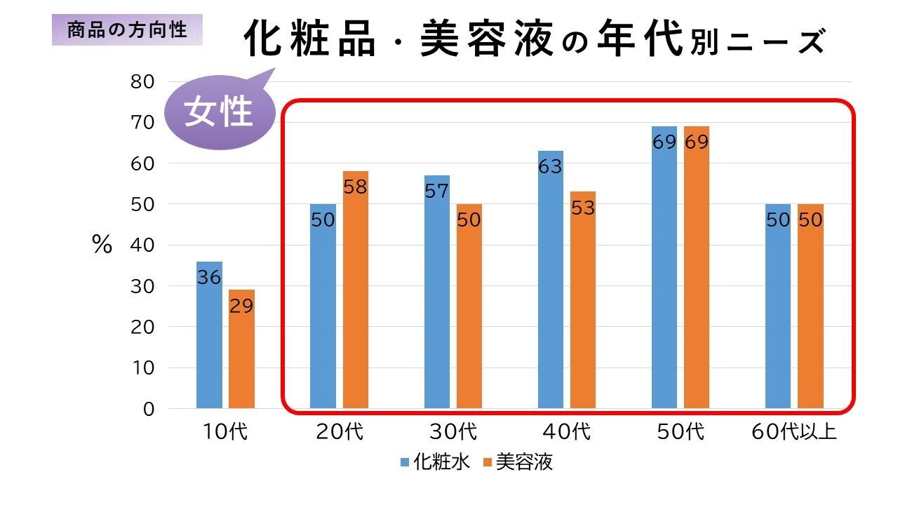 調査の結果、スキンケア商品のニーズが高く、最も支持を得たのは化粧水と美容液。