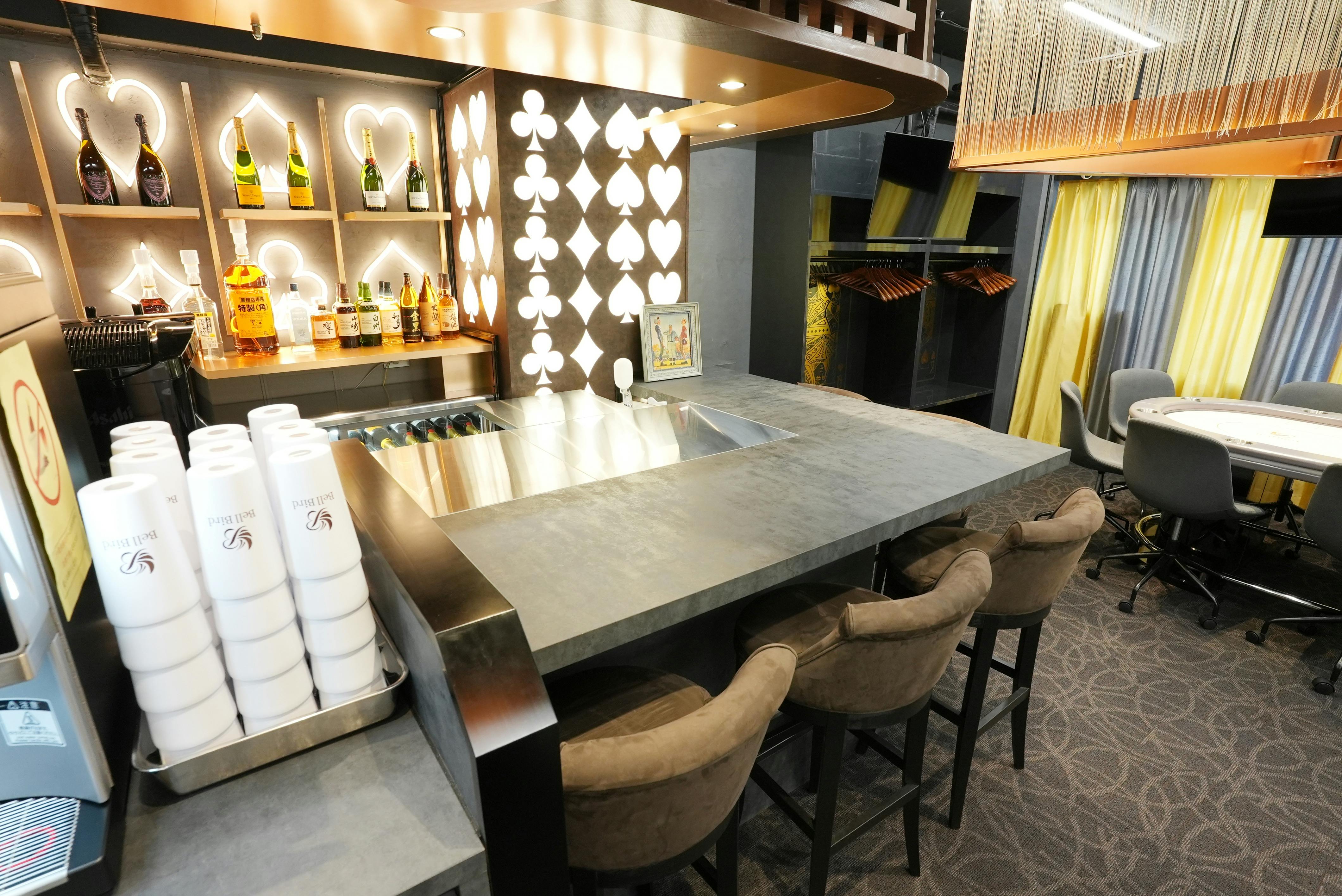 内装工事はほぼ完了しておりLEDビジョンやRFIDテーブル(プレイヤーの持つハンドやスタック量を表示することができる機能を持つポーカーテーブル)の設置に向けて動いております。