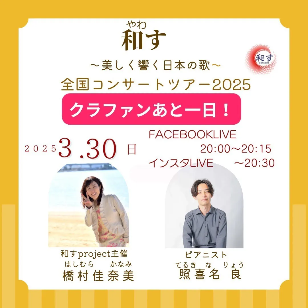 本日、主催の橋村佳奈美とピアノ照喜名さんとでライブを行います。