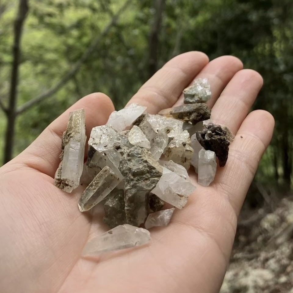 ご支援いただいた方へのお返しとして、私たちが実際に高千穂町で採掘した貴重な水晶の原石、原石アクセサリー、宝石水晶をお届けいたします。この水晶は、自然そのままの美しさを感じていただける特別な一品です。日頃から高千穂水晶の魅力を広めるために活動している私たちの想いが詰まった贈り物として、ぜひお楽しみください。
