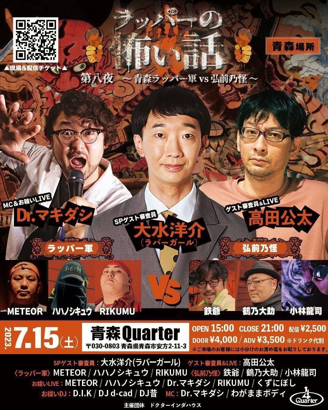 怪談師が語る本格怪談はもちろん、ラッパーが実際に体験したストリートでの怖い話や、人怖や怪談、都市伝説、を“リアル”に聞けるイベント。