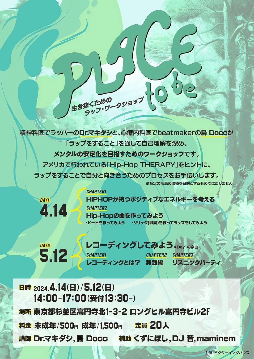 ・現役心療内科医のビートメイカーで、マキダシと共にラップのワークショップを行い