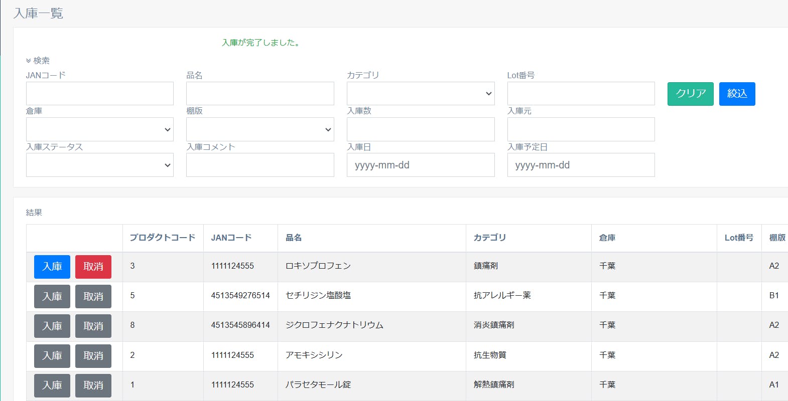 入庫予定や入庫済みなど、ステータスで現在の状態を簡単に確認できます。