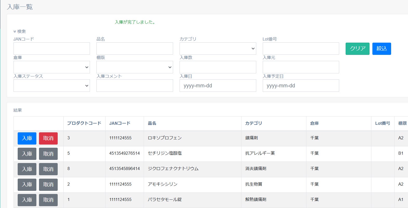 入庫予定や入庫済みなど、ステータスで現在の状態を簡単に確認できます。