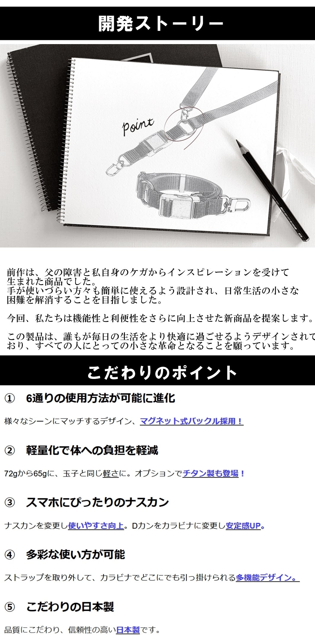 前作より軽量化し、多機能に使用が可能になるストラップを提案したい…そんな願いを込めて、今回のプロジェクトを立ち上げました。