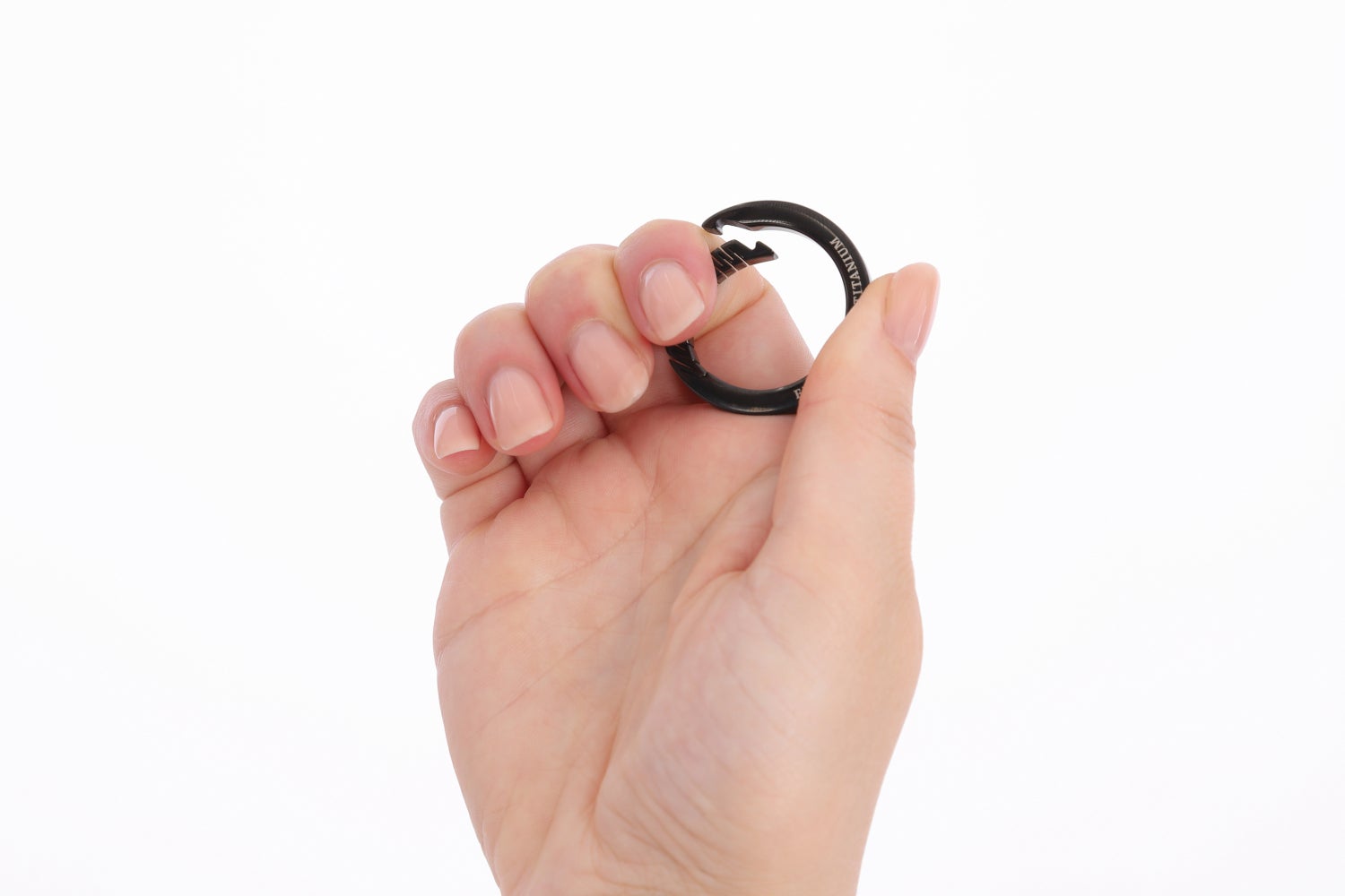 A:本体の総重量は標準装備の合金カラビナ使用時と同一の約65gです。重さは変わりませんが、チタン製は比重が軽く、強度や耐久性に優れ、長期的な使用にも適しています。
