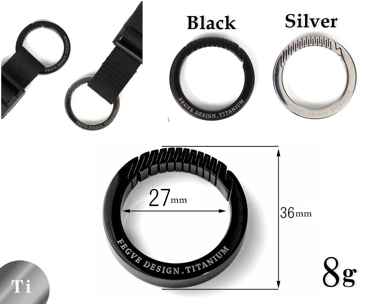 ■ カラビナをオプションのチタン製に変更しても、本体の総重量は約65gと標準装備の亜鉛合金カラビナ使用時と変わりませんが、チタン製は比重が軽く、強度や耐久性に優れ、長期的な使用にも適しています。