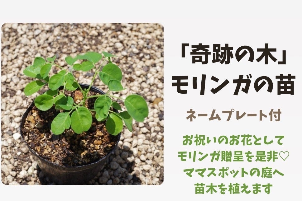 「奇跡の木」と呼ばれるモリンガ。庭に植えたモリンガの木にひとつひとつ支援者の名前を記載します。お祝いのお花として認識していただきたく思います。
