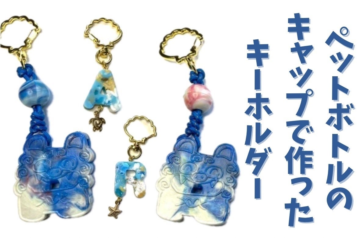 ペットボトルキャップを再利用しキーホルダーを作成している環境にも優しいキーホルダー