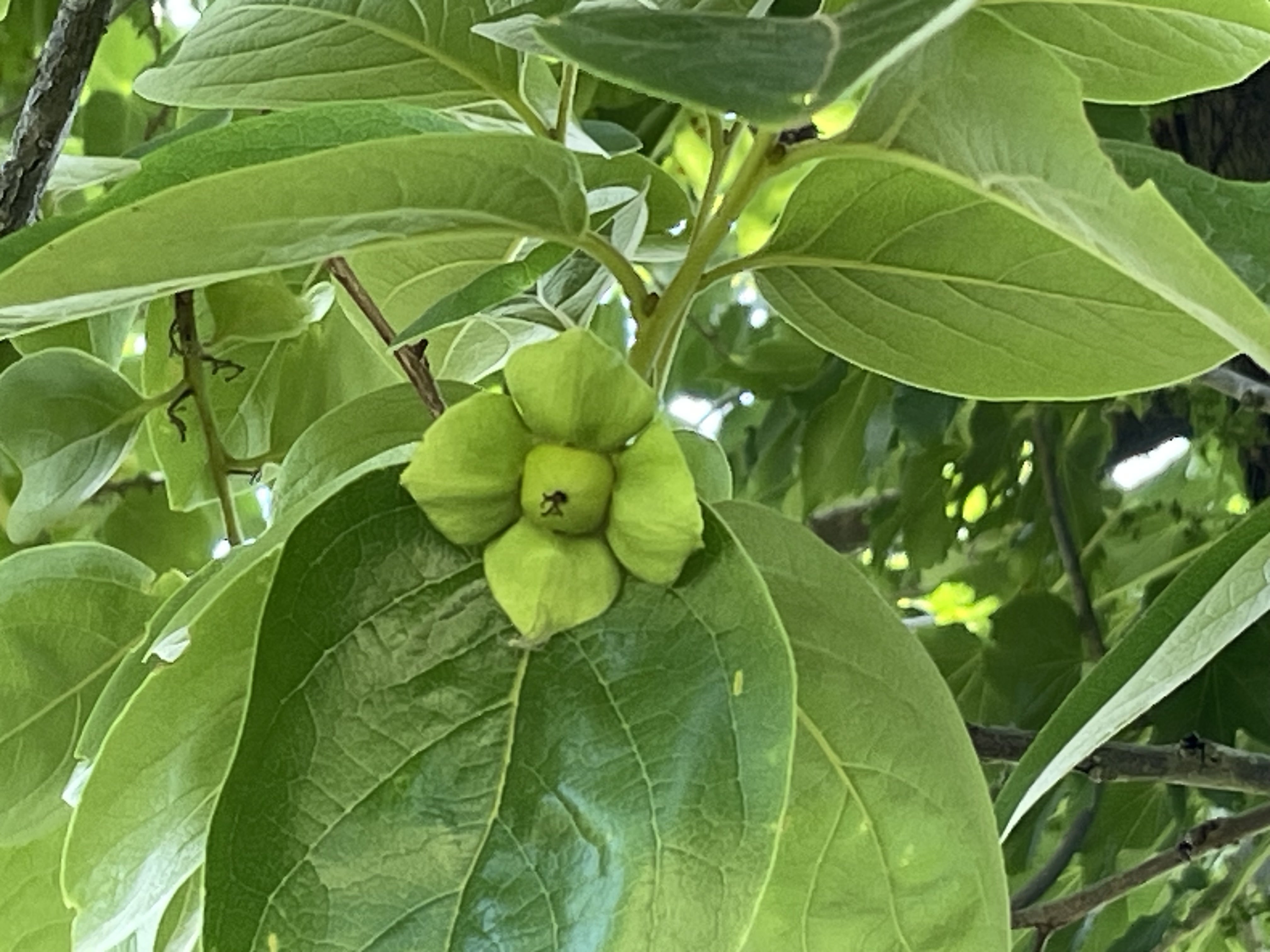 今、柿が小さな実を付けています。