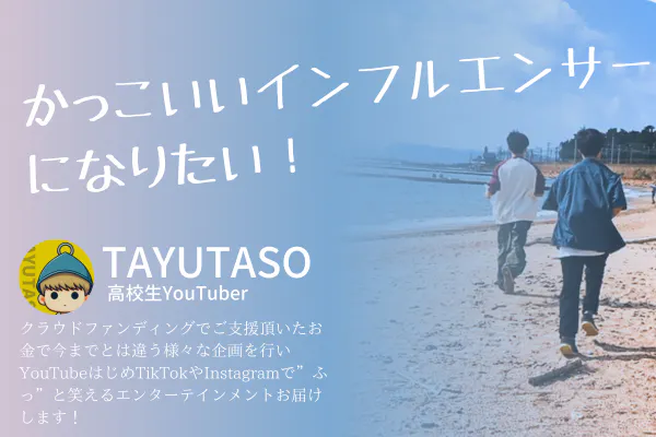 僕は、11月から夢だったYouTube活動を友達5人の助けをえて開始したのですが予想以上にお金(ランニングコスト)がかかってしまい自分たちのバイト代やおこずかいだけでは厳しいくなってしまいました。春休みに投稿頻度を増やし頑張って行きたいと考えています。