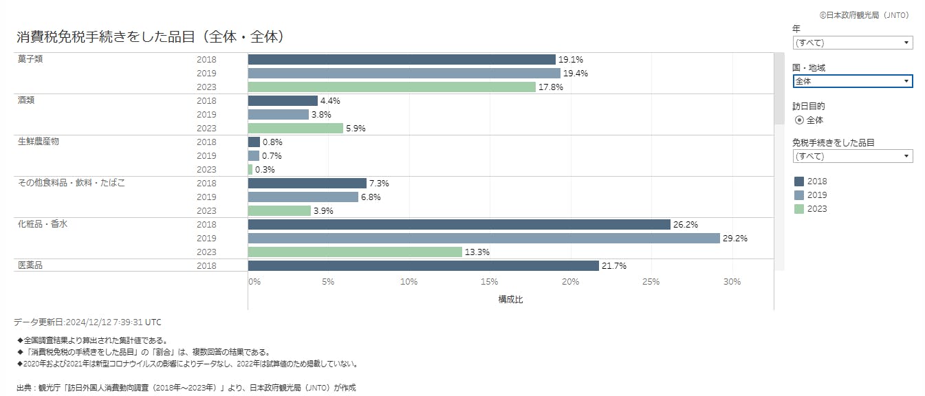 (グラフは、訪日外国人観光客が購入するお土産品目を示しています。出典:日本政府観光局)