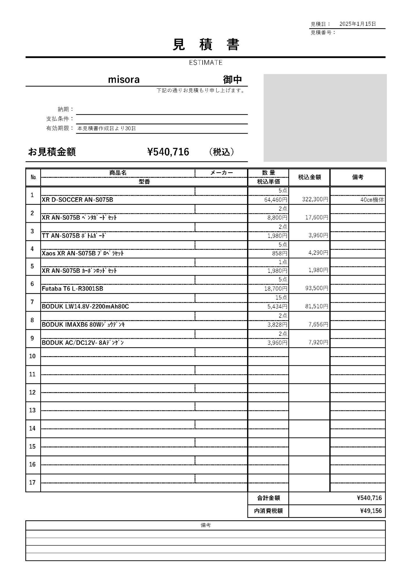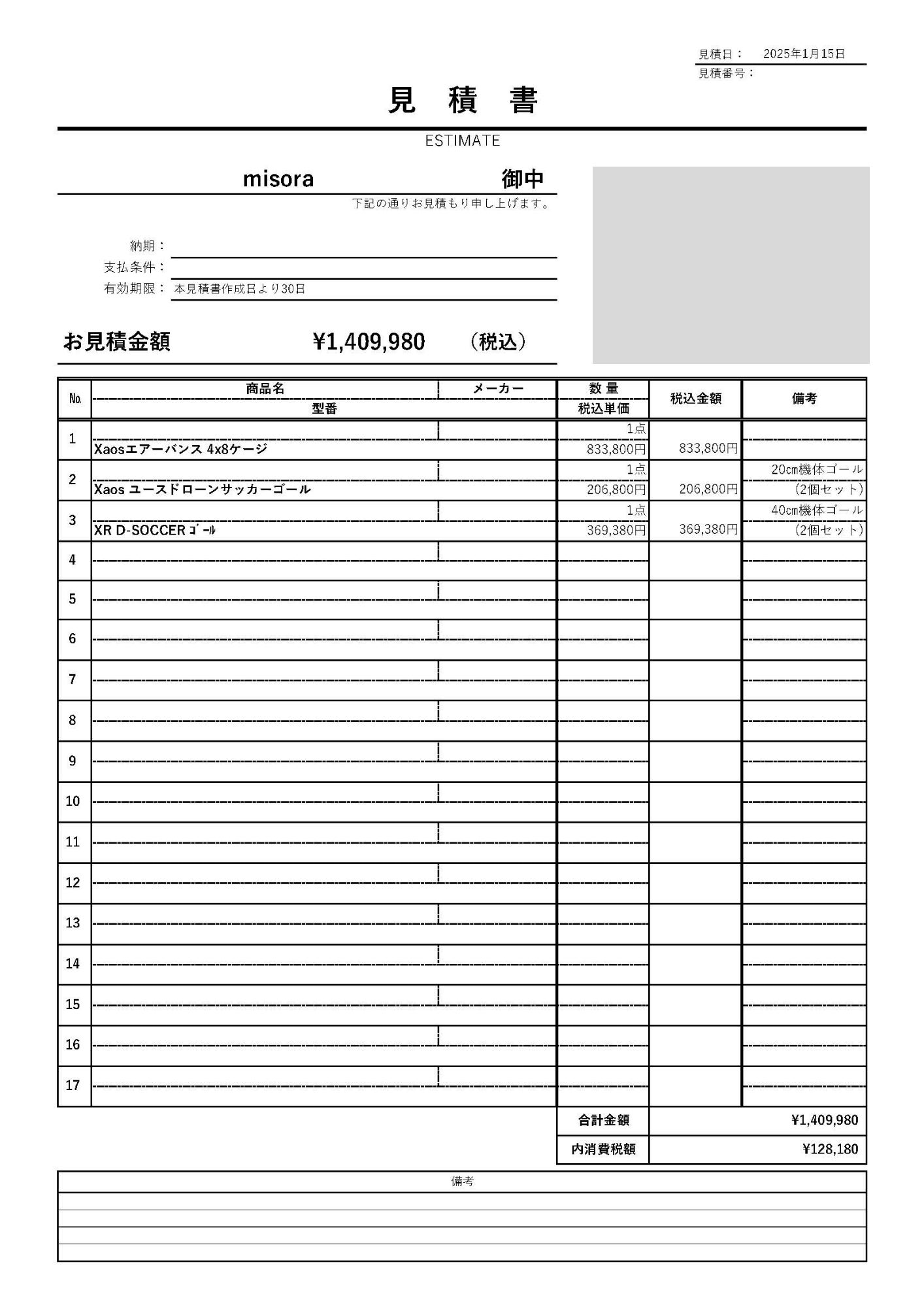 ドローンの購入からインストラクター等丁寧な説明や実際現場にも来て頂きレクチャーもやって頂いて大変助かっております。