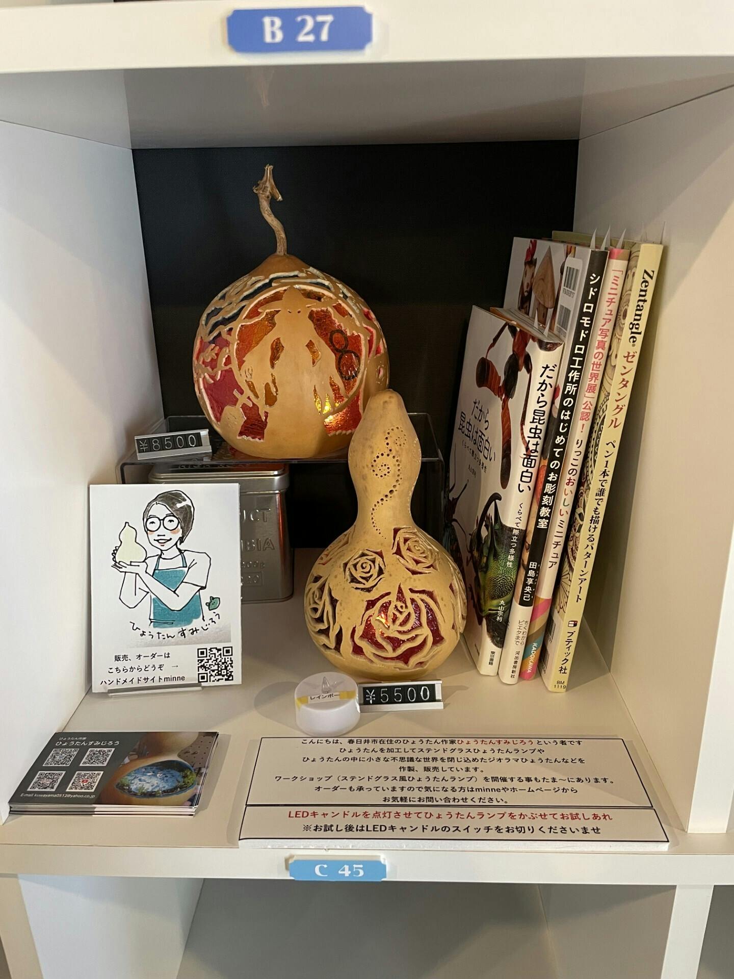 こんばんは。いつも遅い時間に活動報告になってしまいます。本日の報告はC45の本棚オーナー「ひょうたんすみじろう」さんの本棚を紹介します。春日井市が住みやすいと言ってくださるひょうたん作家さん。お人柄も作品も情熱もすばらしく、すぐに引き込まれてしまいました!お話させていただいているだけでワクワクして、いろんな提案が浮かんできて“たのしい!”と“このたのしいをいろんな方と共有したい!”を感じました。みなさんお店がオープンしたらぜひ「C45」の棚を見てみてくださいね!さてクラウドファンディングの終了が近づいてまいりました。感謝と現実を学んだクラウドファンディング。あと4日走り続けます。最後の最後までご支援いただいた皆様への感謝を忘れません。あと4日、皆様の周囲の皆様でクラウドファンディングを共有できる方がおられましたらご紹介をお願いしたいですし、SNS等での口コミ・拡散をお願いできればと思います。春日井市そして上条町をみなさんで盛り上げましょう!何卒、よろしくお願いいたします。