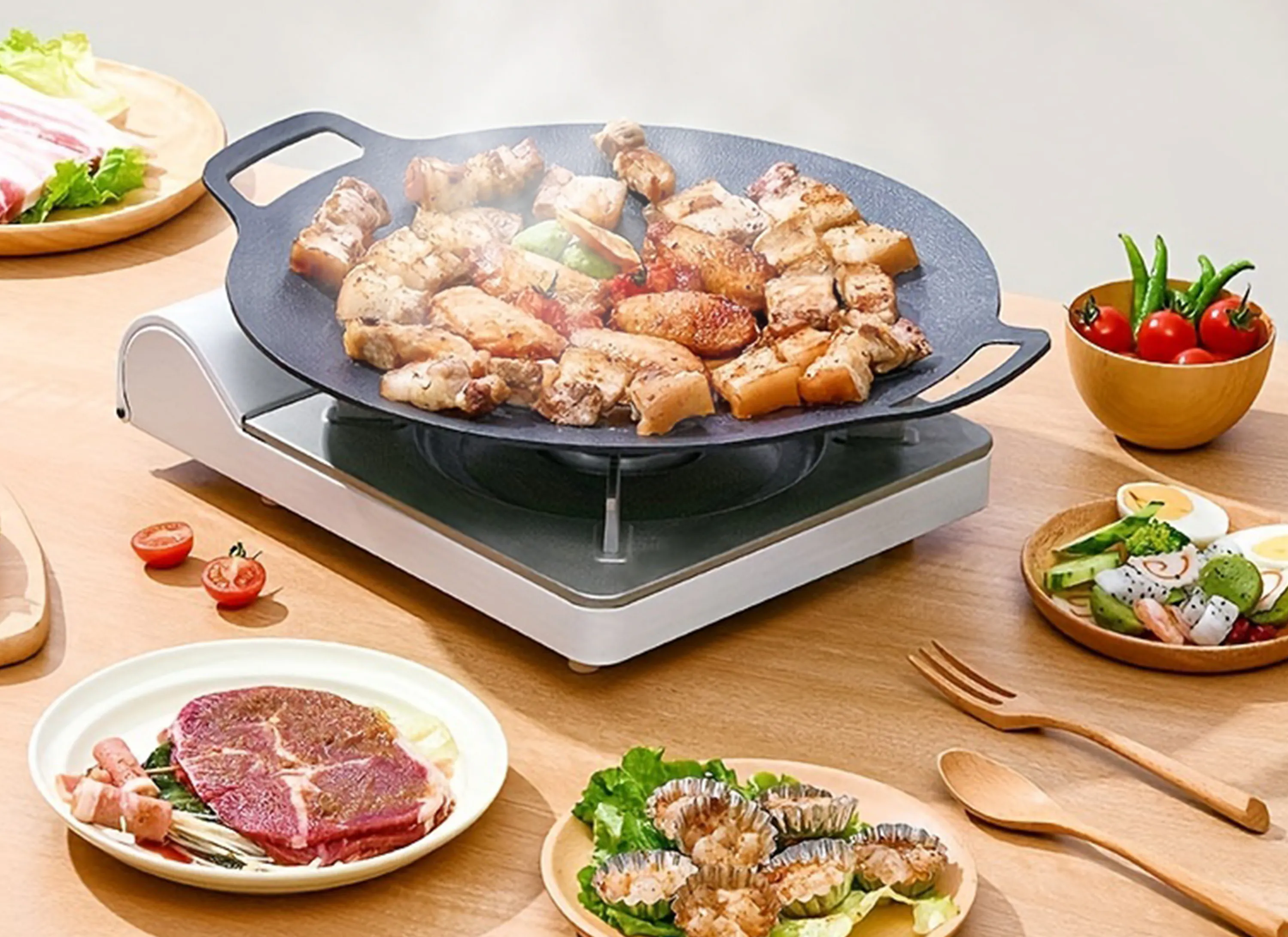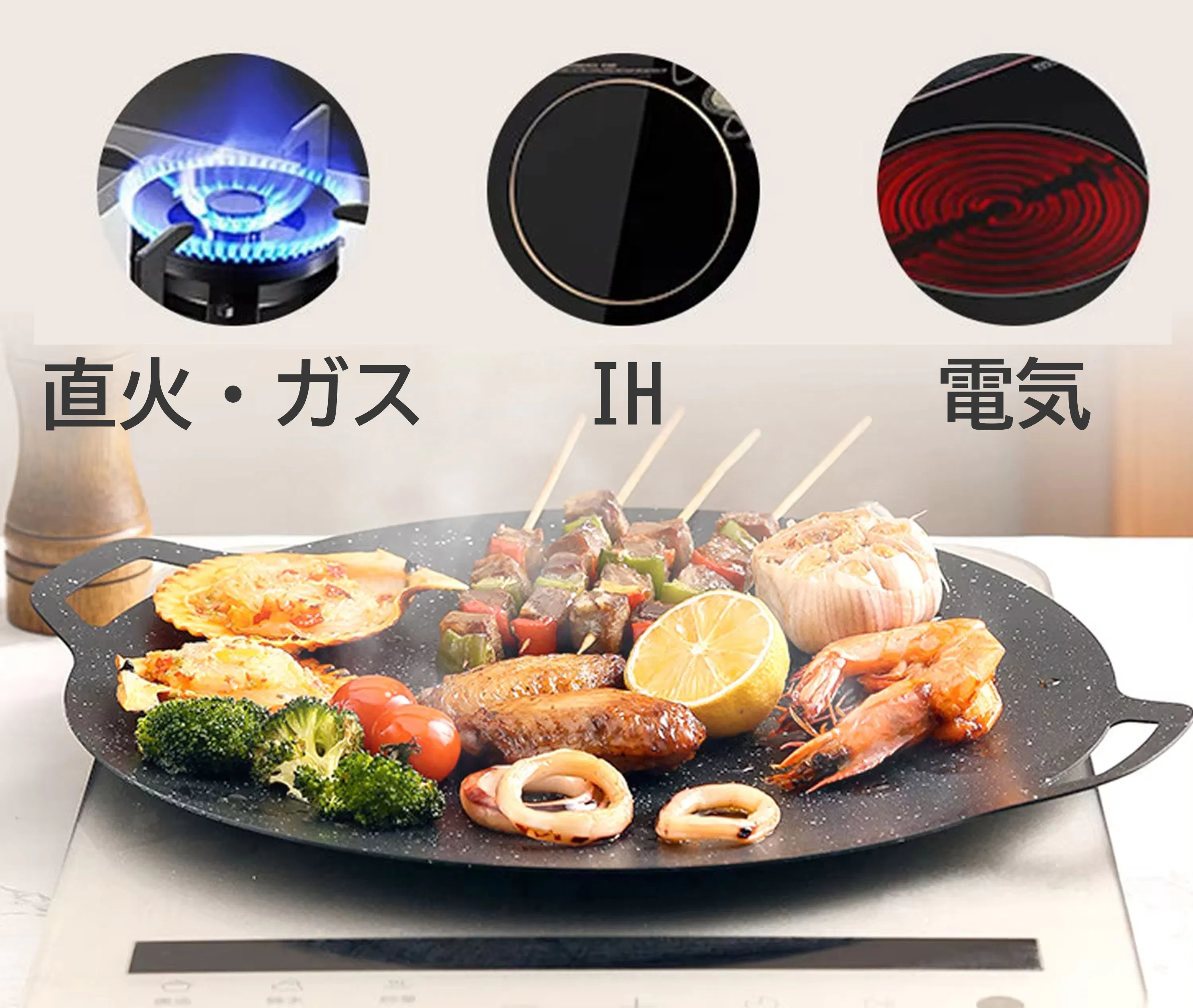 GRILLPANは、ガス・IH・オーブン・直火・炭火など、あらゆる熱源に対応できる万能調理器具です。